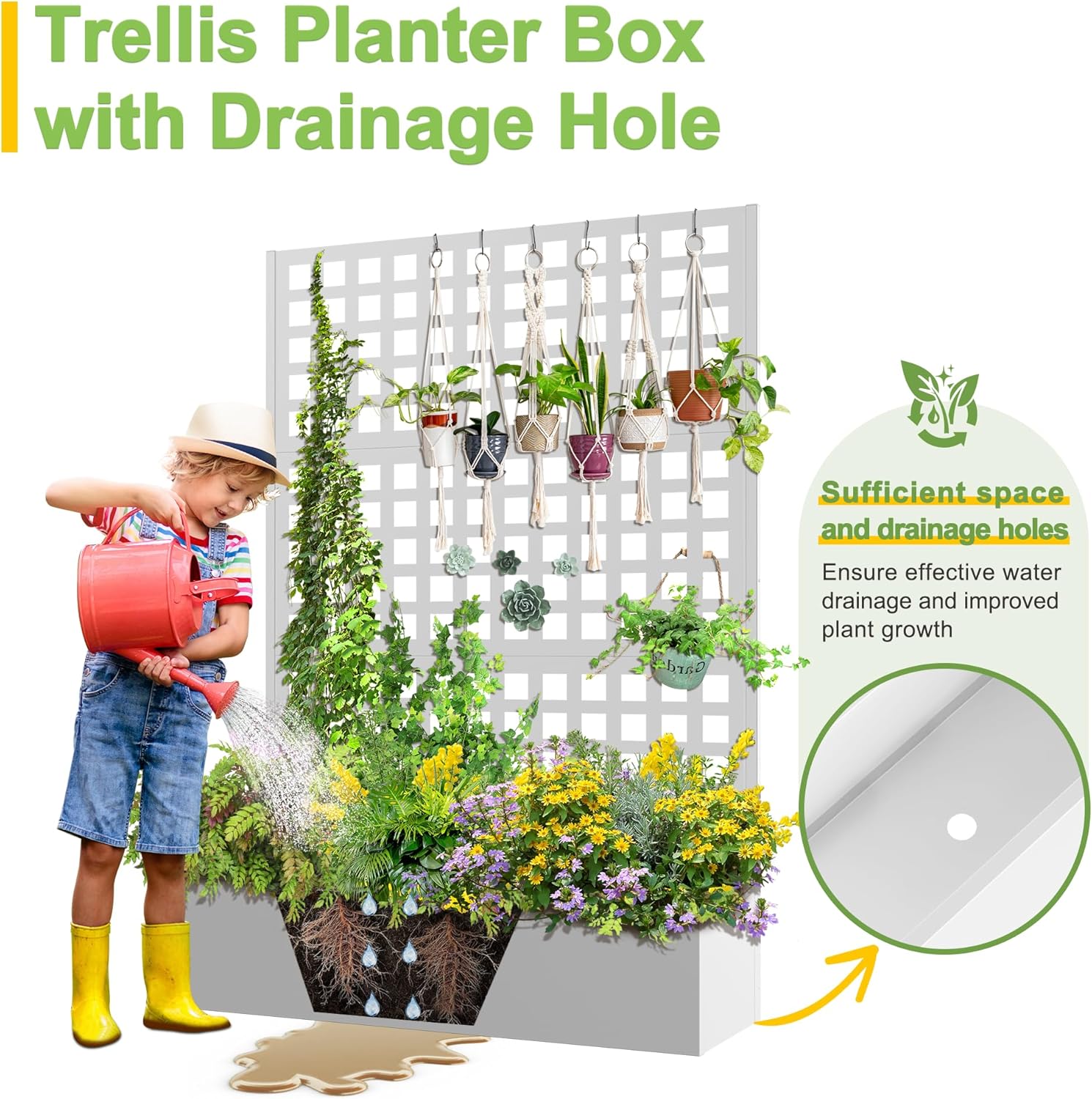 - Perfect for Climbing Plants: Create a stunning vertical garden with this trellis planter box, complete with a drainage hole to keep your plants thriving. It's the perfect choice for cultivating climbing plants and adding a touch of elegance to your outdoor space.