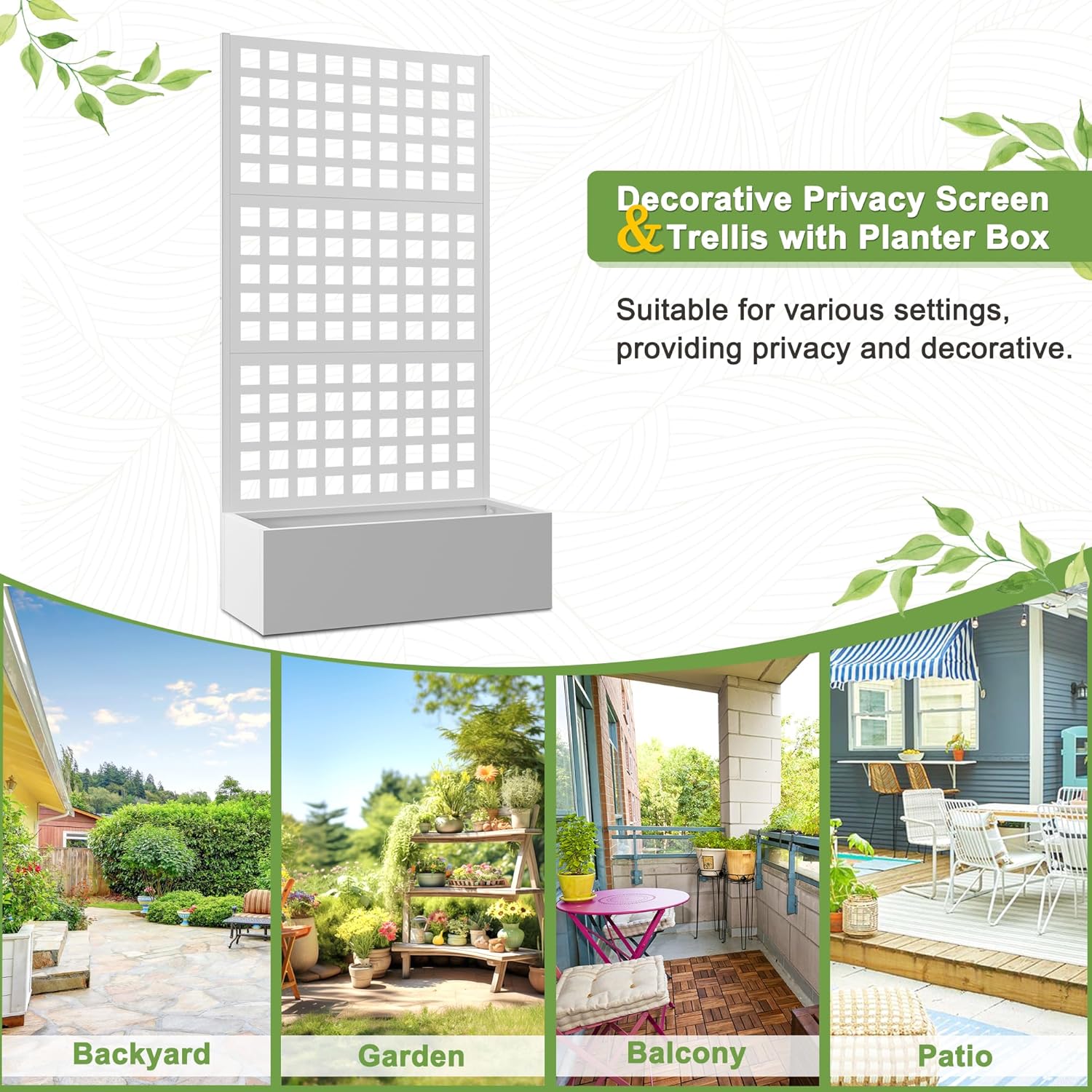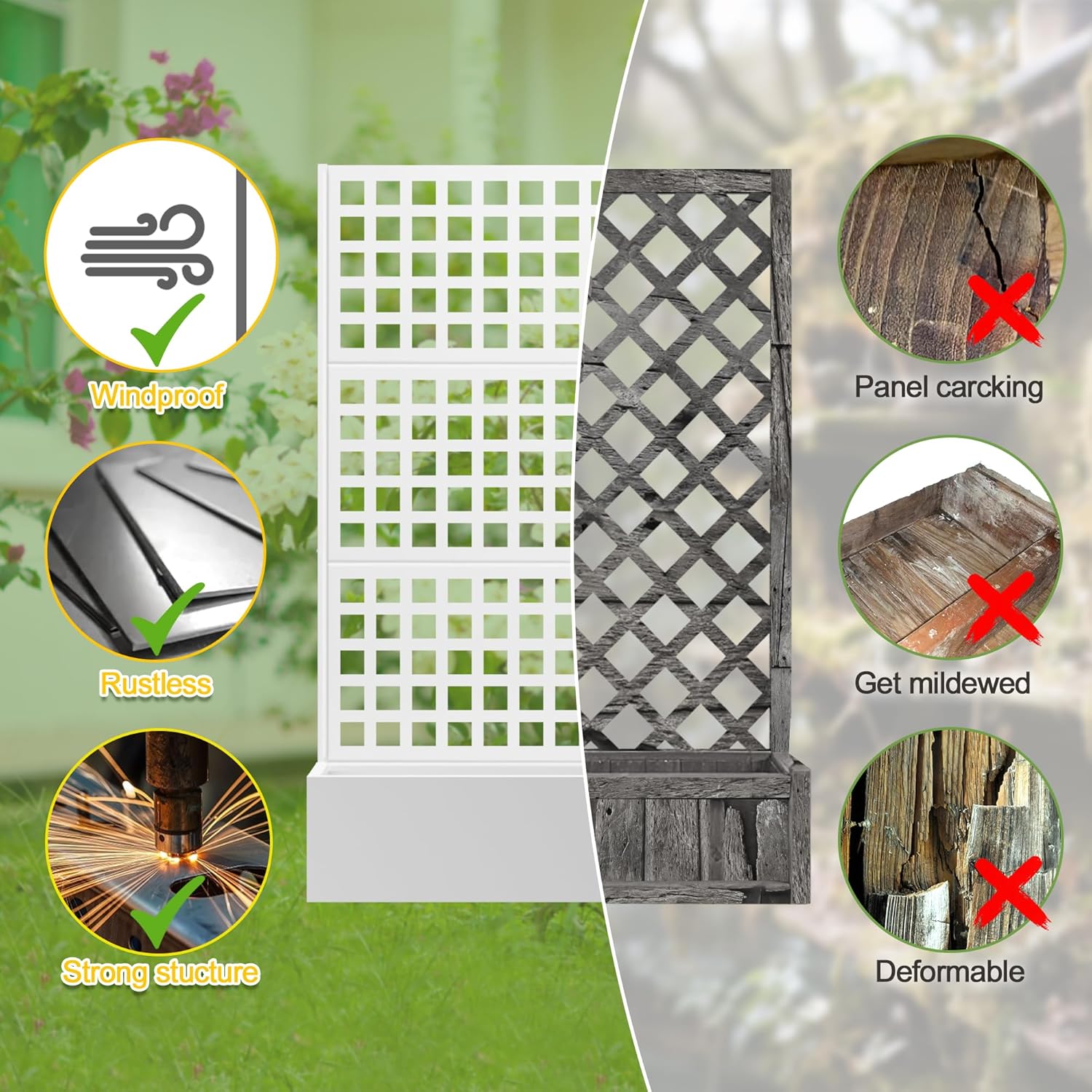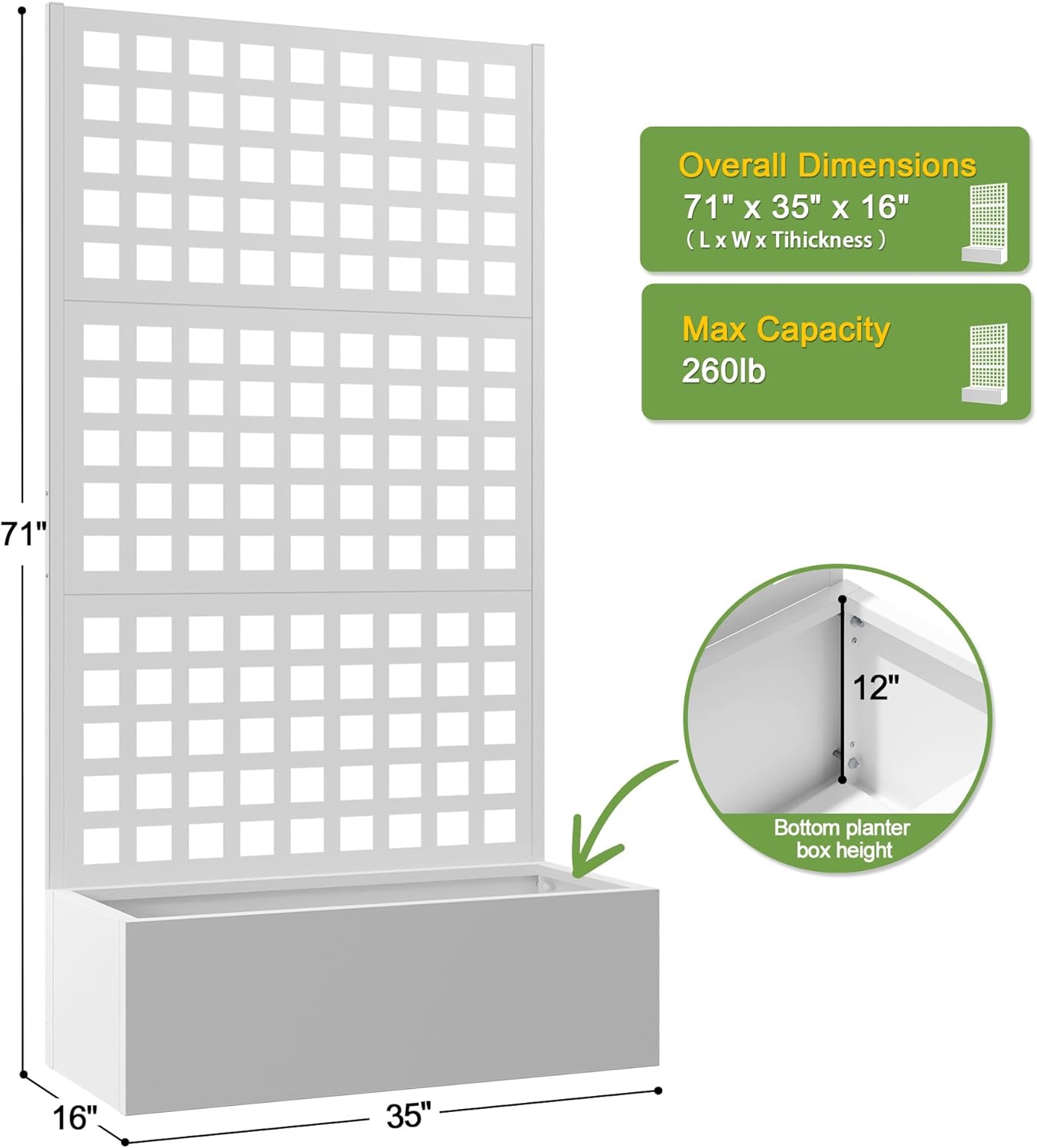 FENCY Metal Raised Garden Bed with Trellis, Planter Box with Trellis, Garden Box for Climbing Plants Vegetable, 35''Lx16''Wx71''H Metal Garden Bed with Drainage Holes(White)