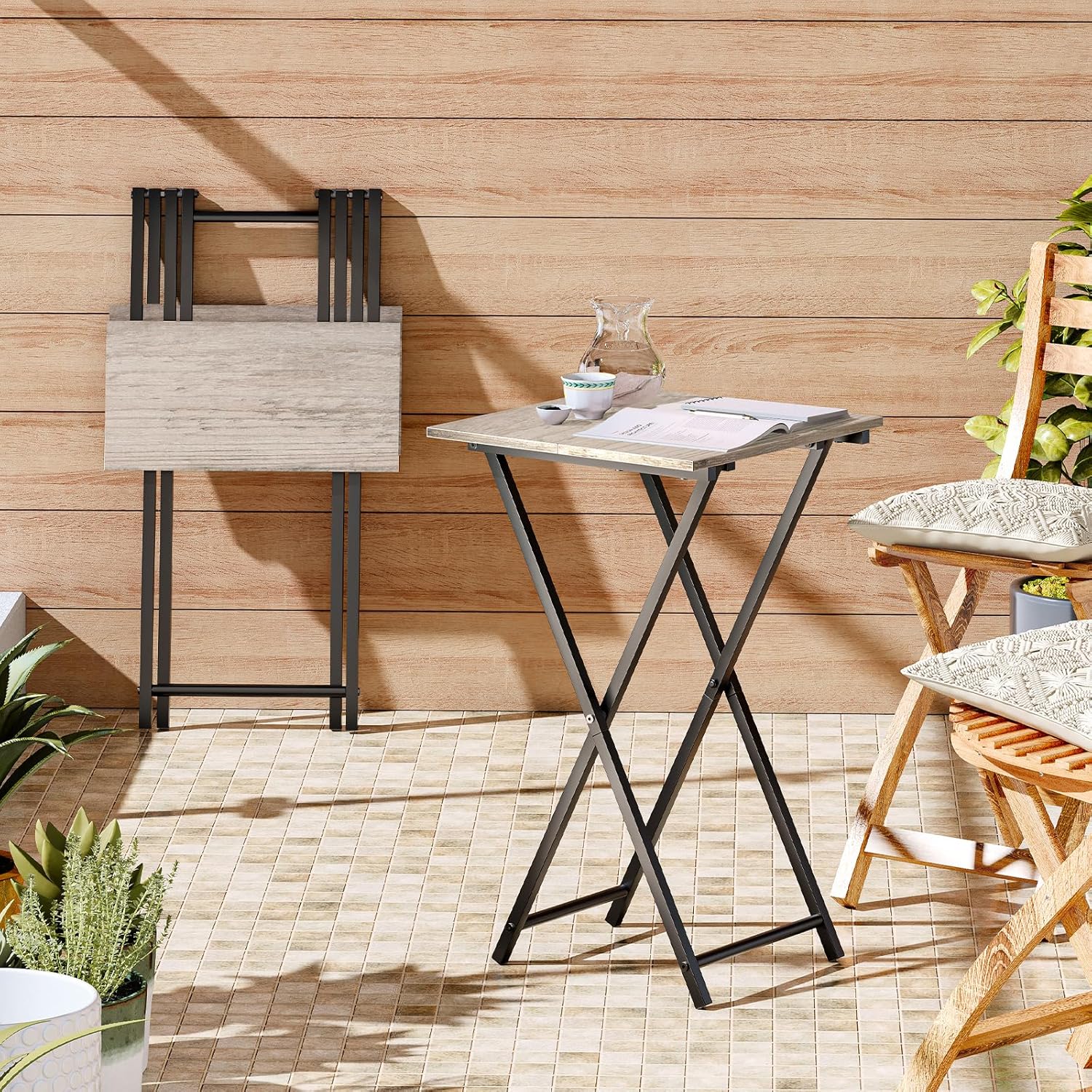 - Bring Comfort to Your Life: This folding TV tray table in 15.7"L x 15.7"W x 26"H is conveniently designed for your food, drinks, tablets, laptops, enabling you to enjoy your favorite snacks, beverages and TV shows while lounging on the sofa or recliner