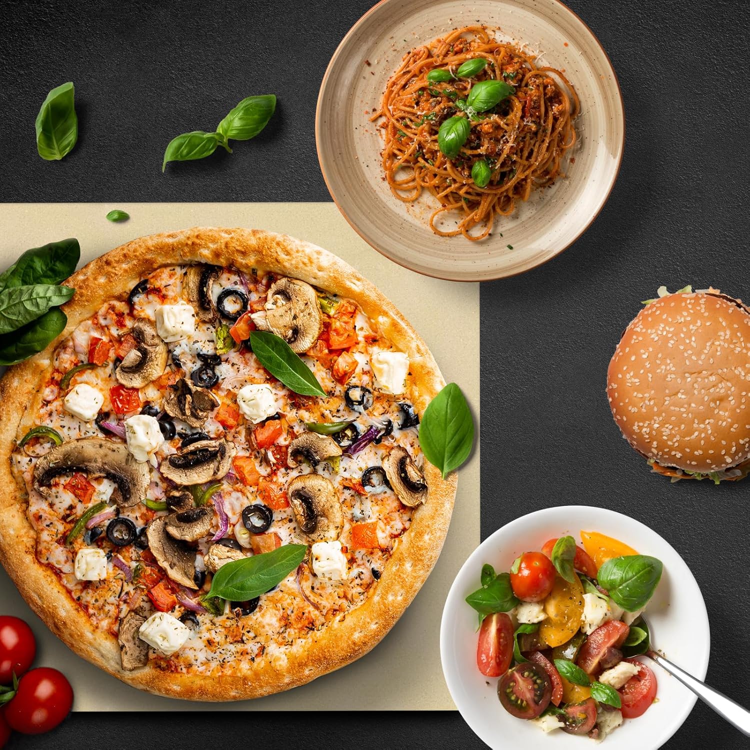 - Multifunctional Pizza Stone for Grill: Pizza Baking Stones can be used directly on Ovens and Grills. Pizza Baking Stone is not only can make professional pizza, but also a good choice for baking bread and cookies. Allowing you to enjoy high-quality pizza from the pizza shop without leaving your home. After baking, wait for the Pizza Baking Stone to cool down and rinse with warm water. After washing, wiping dry can extend its service life