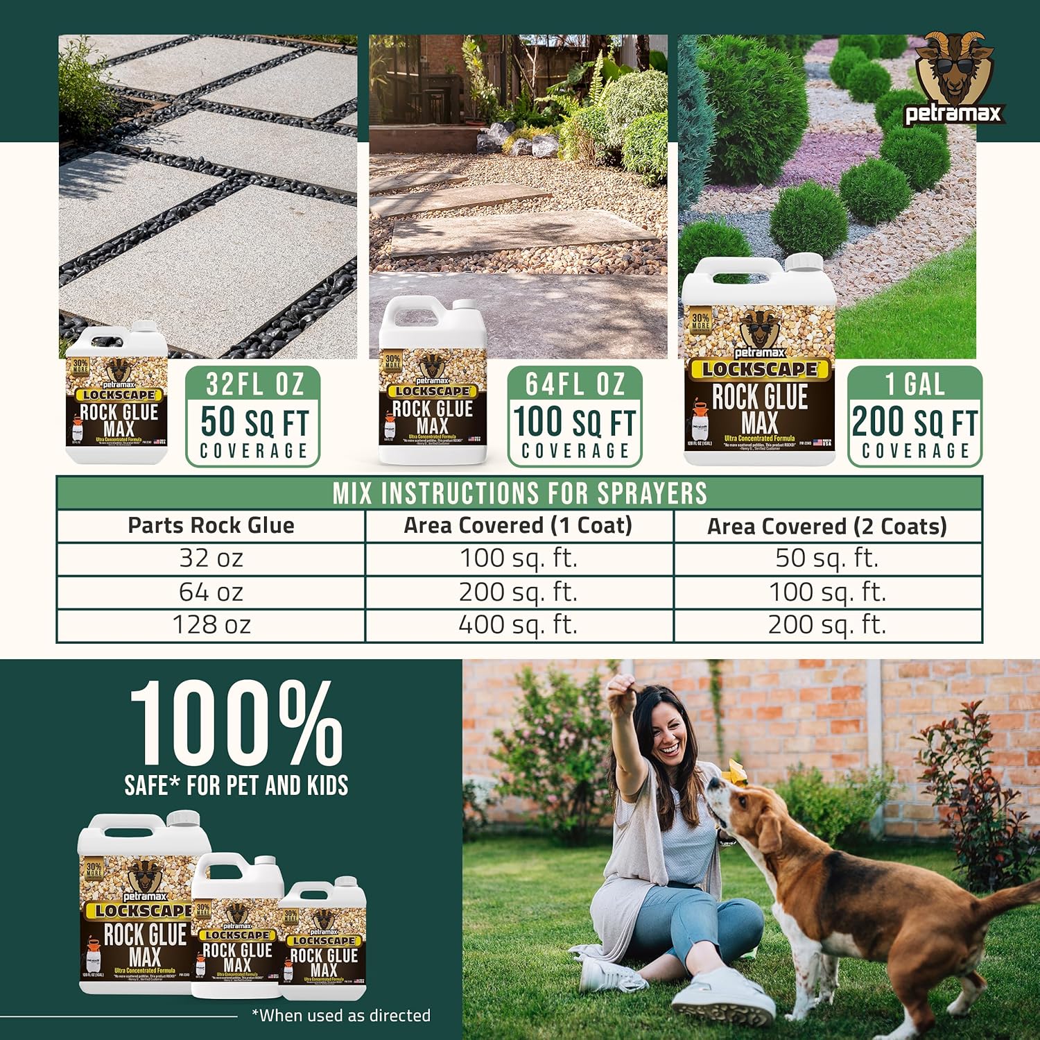 Petra Max Rock Glue for Landscaping, 32 Ounce - Ground Coverage & Pet Safe Mulch Glue for Rocks - Lockdown Gravel/Pebbles/Stones - Sticky Clear Gravel Binder & Decomposed Granite Stabilizer (50 Sq Ft)