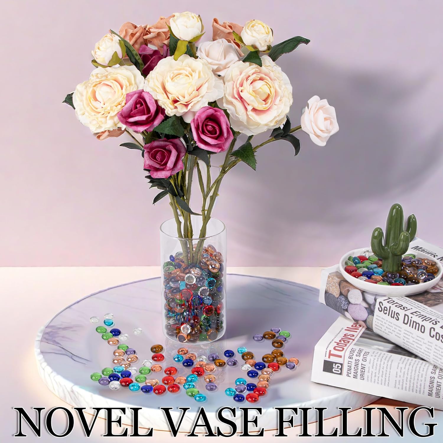 2LB Mini Glass Gems,Mixed Colour Mancala Stones Flat Bottom Marble Beads for Home Decorative Art Craft Vase Filler(0.5"~0.7")