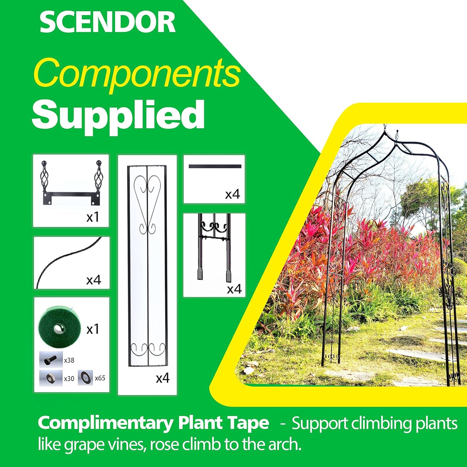 - 【Sturdy Construction Archway】Made of black heavy duty iron anti-rust frame. The trellis arch for climbing plants outdoor with powder coated material. The 8 inch ground spike inserts into the ground to add stability to the arches.