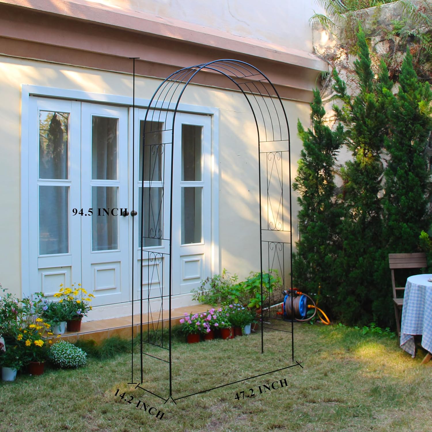 - 【Robust Craftsmanship】: Crafted from premium iron, our arch stands the test of time, offering unwavering durability and resistance against deformation. Expect a sturdy and reliable structure that enhances your outdoor space.