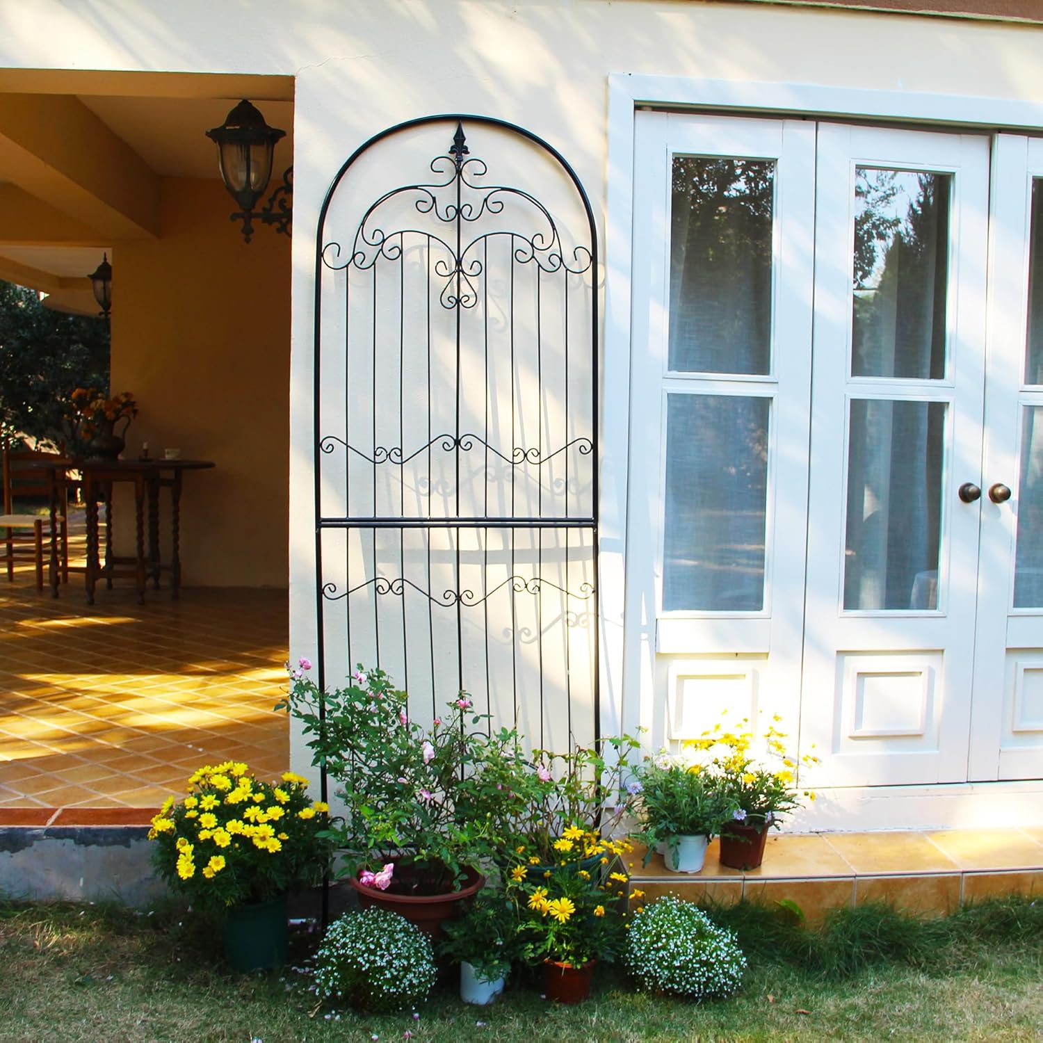 - Enduring and Weather-Resistant: Crafted from rustproof, high-quality iron with a sleek black powder-coated finish, this plant trellis offers sturdy support for a variety of climbing plants and vines. With dimensions of 86.6" H x 29.5" W and a net weight of 14.3 LB, each package includes a single garden trellis.