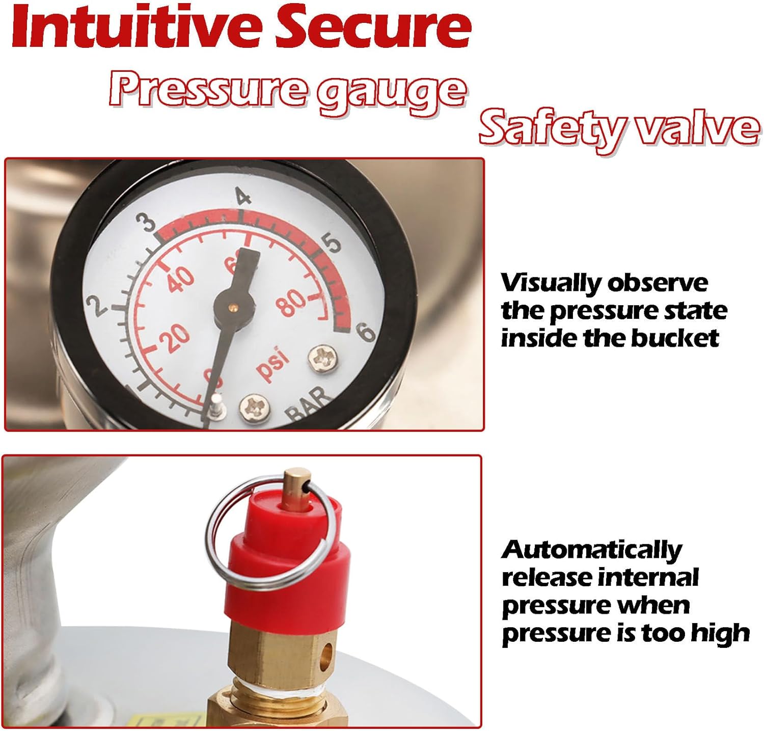- Comprehensive design - adjustable brass nozzle for direct spraying, achieving fine mist. A pressure gauge can visually display the pressure inside the tank. When the pressure is too high, the valve can automatically release internal pressure to keep the pressure within a reasonable range.