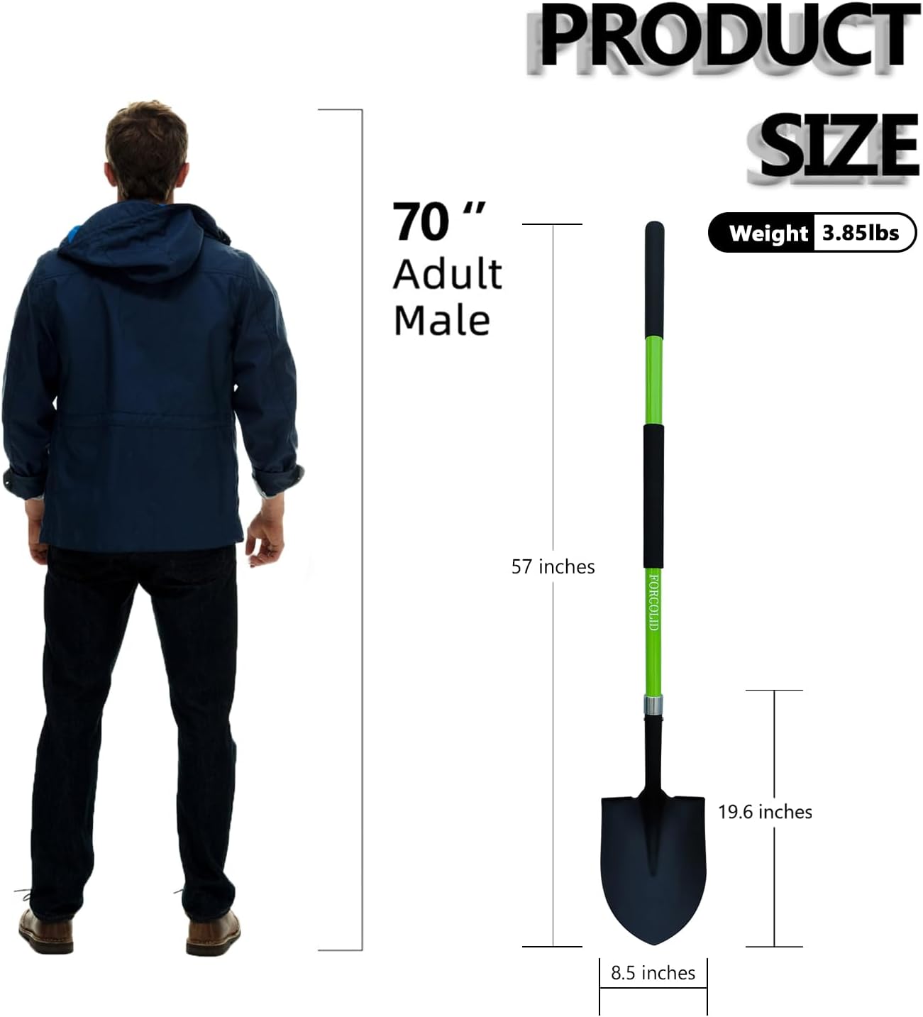 - Dimension: The 57 inches shovel for digging is suitable for adults, the right size can reduce the pressure on the waist, and long-time users will not feel tired.