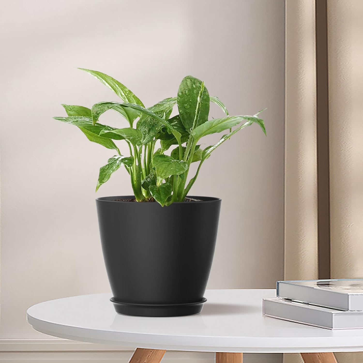 8 Pack 4 Inch Plant Pots with Drainage Holes and Saucers, Pots for Plant Indoor, Plastic Planters for Succulents and Small Plants, Black