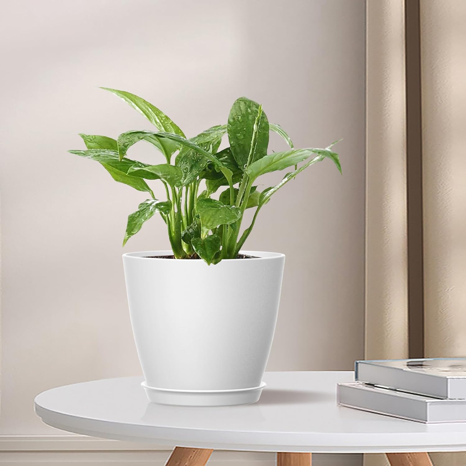 8 Pack 4 Inch Plant Pots with Drainage Holes and Saucers, Pots for Plant Indoor, Plastic Planters for Succulents and Small Plants, White