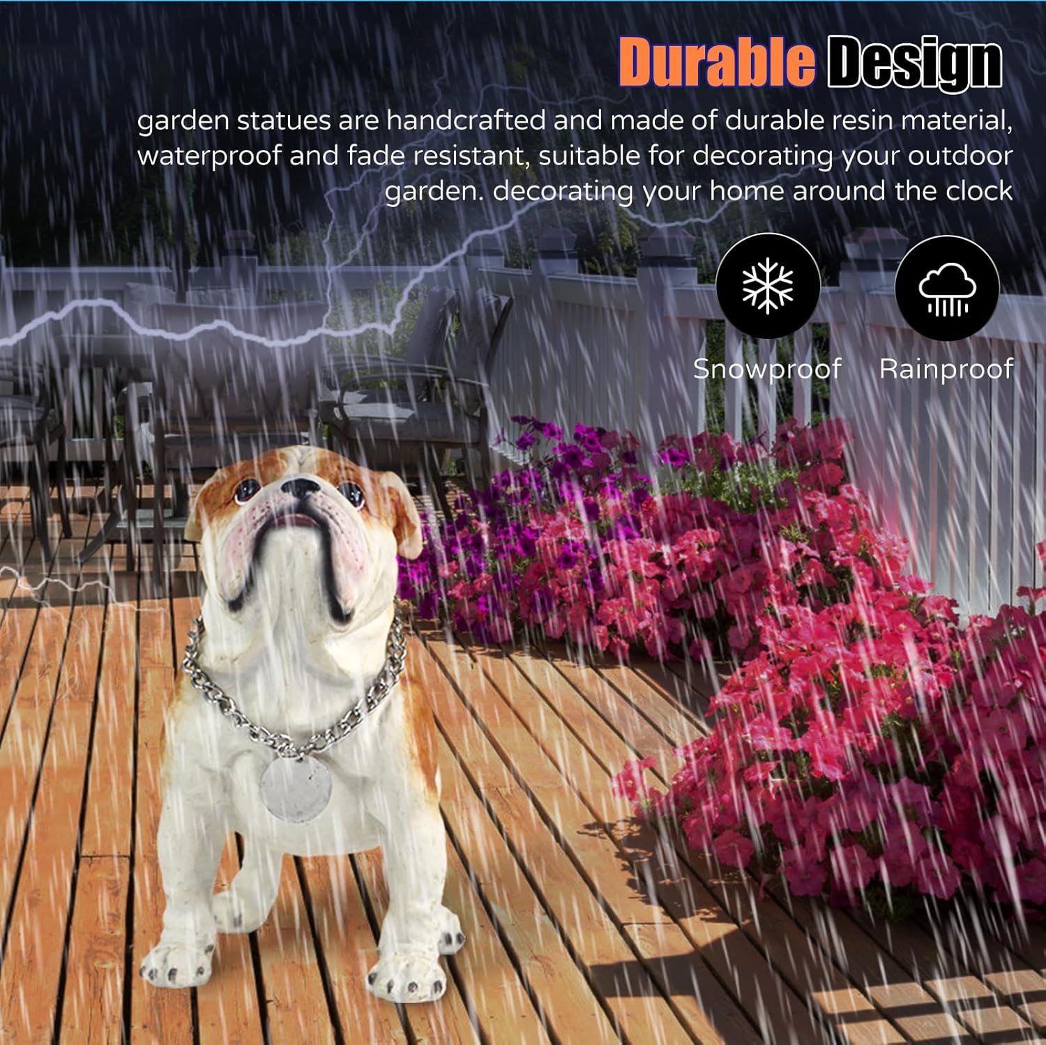 - Charming Design: Delightful English Bulldog puppy figurine adds a touch of whimsy and personality to your garden, porch, or patio
