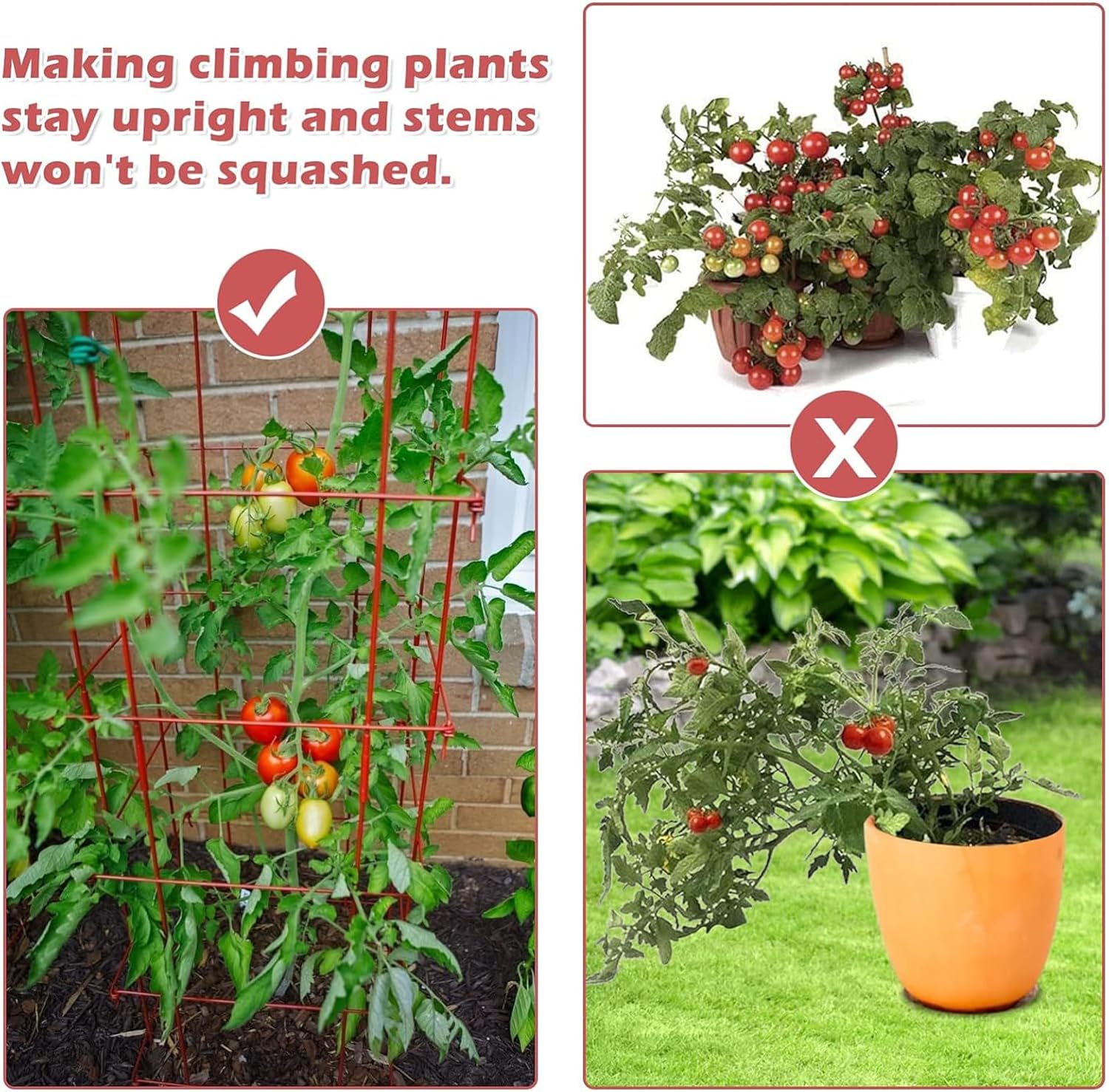 DoCred 4 Pack Tomato Cage, Folding Tomato Cage Heavy Duty Metal Square Tomato Cages Coated Steel Garden Plant Support Stake Tower for Climbing Vegetables, Plants, Flowers, Steel Red