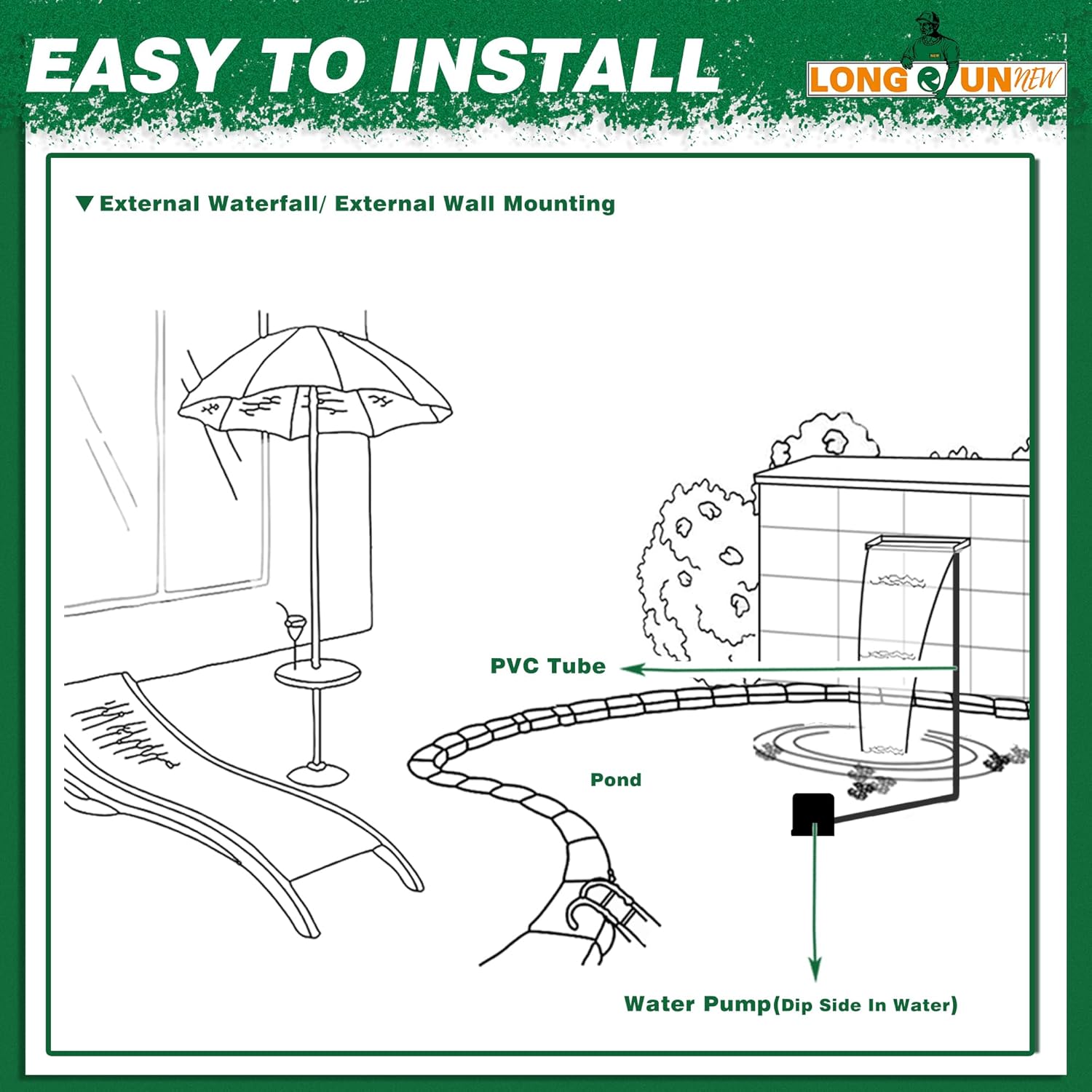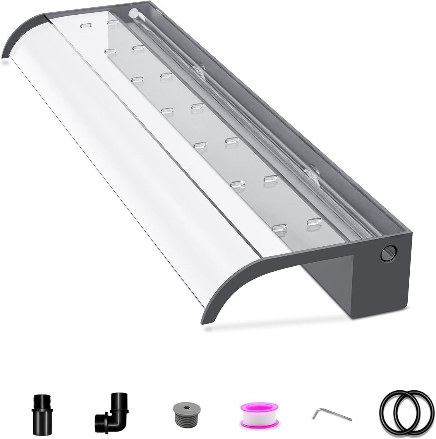 - ăGarden & Pond Decoration Waterfallă- The LONGRUNNEW waterfall spillway adds decorative elegance and beauty to gardens and pools. Optional color-changing LED light strips, sold separately, create a special ambience at night. The gentle sound of the cascading water enhances outdoor patios. Note: LED light strips are not included with the waterfall but can be purchased separately in our store.
