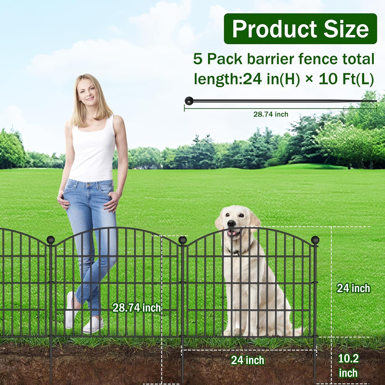 - 【Tall Garden Fence Animal Barrier】Each panel measures 24" H x 24" W with a 1.57-inch gap, and a set of 5 panels connects to 10 feet in length, these tall garden fences provide superior protection for your yard, patio, or garden. The sturdy metal construction ensures durability, while the arched design adds a decorative touch to your outdoor space