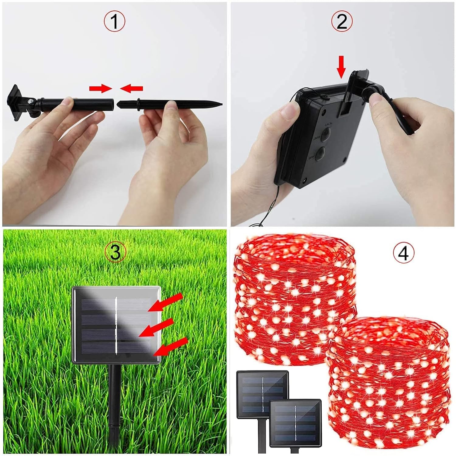 - [Solar Powered & Auto On/Off] : This Christmas string light is solar powered, no electricity cost. Just place the battery panel in sunny area, it will automatically charge at daytime and light up at night