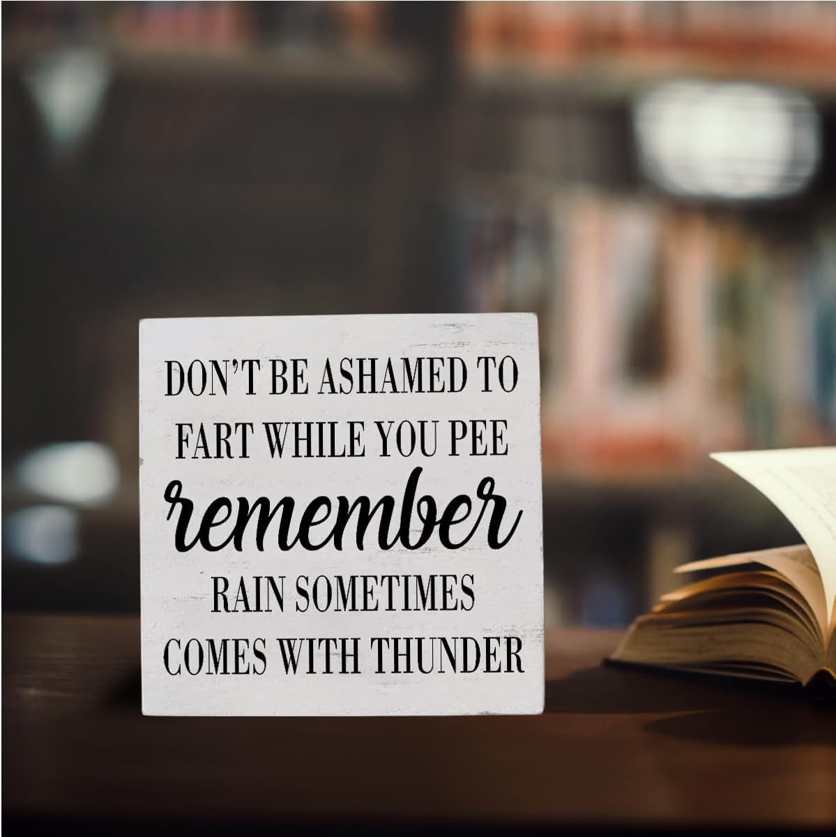 HTBIG Funny Bathroom Decor Desk Decor Wooden Box Sign Rustic White Wood White Plaque Box Sign for Home Farmhouse Bar Toilet Washroom Shelf Table Decoration Don't be Ashamed to Fart While Peeing Sign