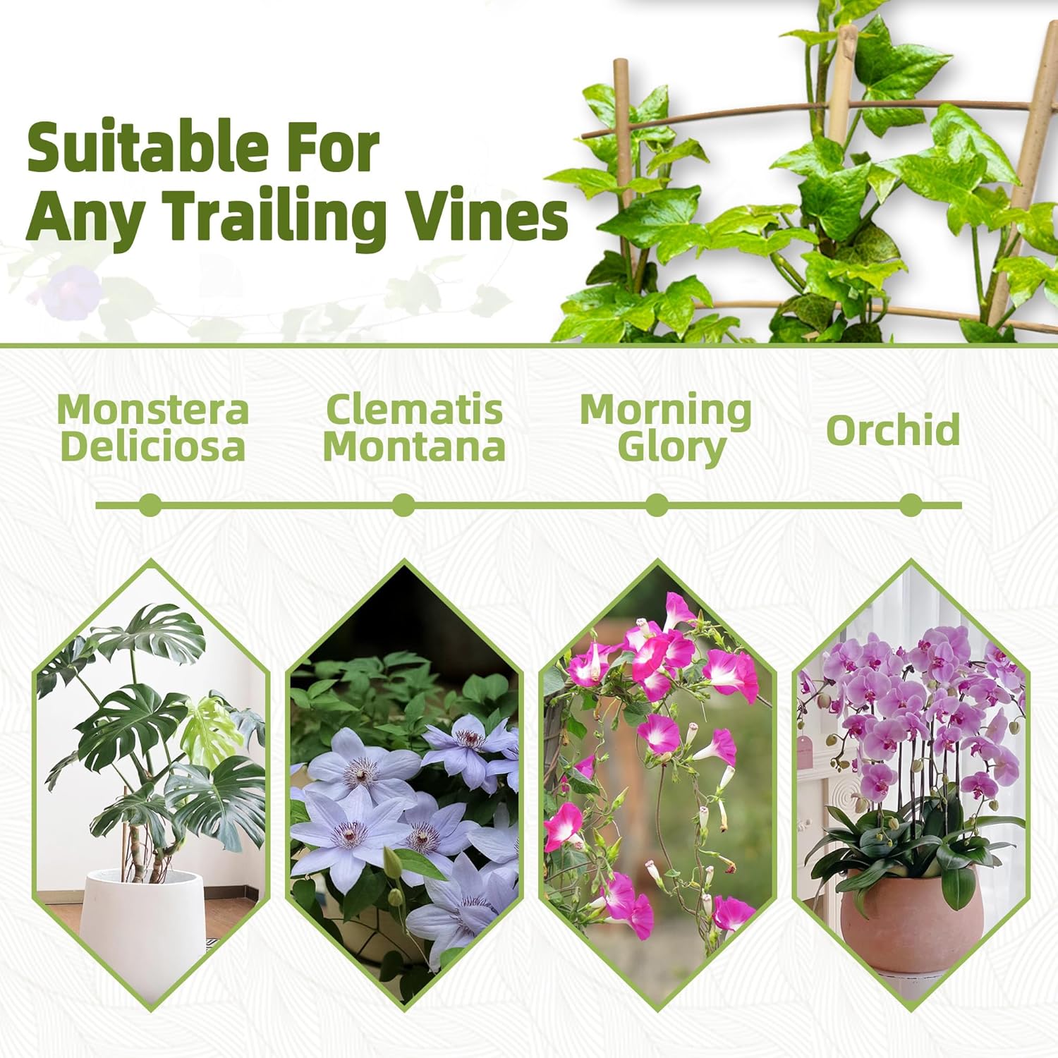 - ☘️【Wide Applications】Suitable for climbing plants, flowers, vines, and vegetables, such as ivy, wisteria, morning glory, peas, jasmine, cucumber, tomato, clematis, etc.