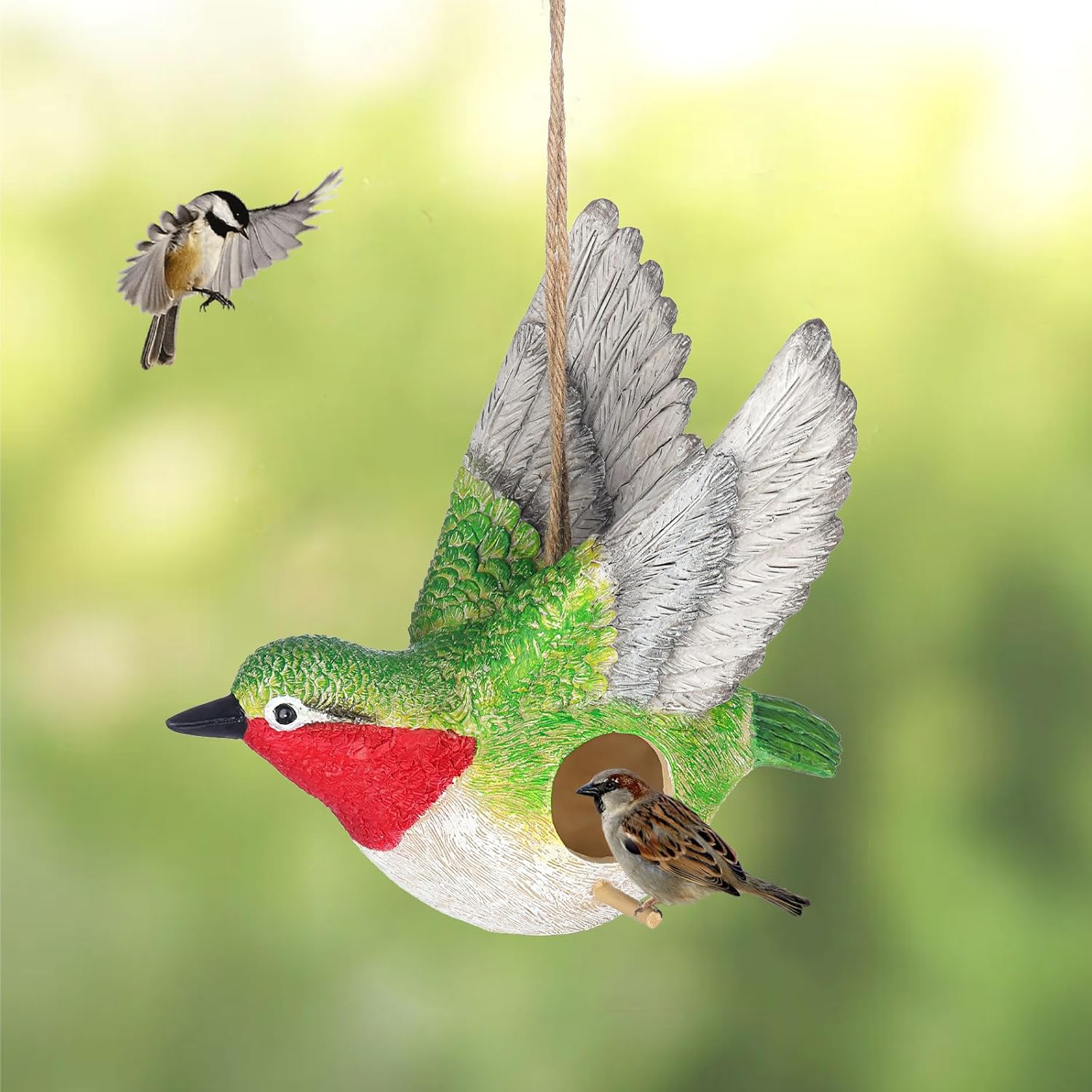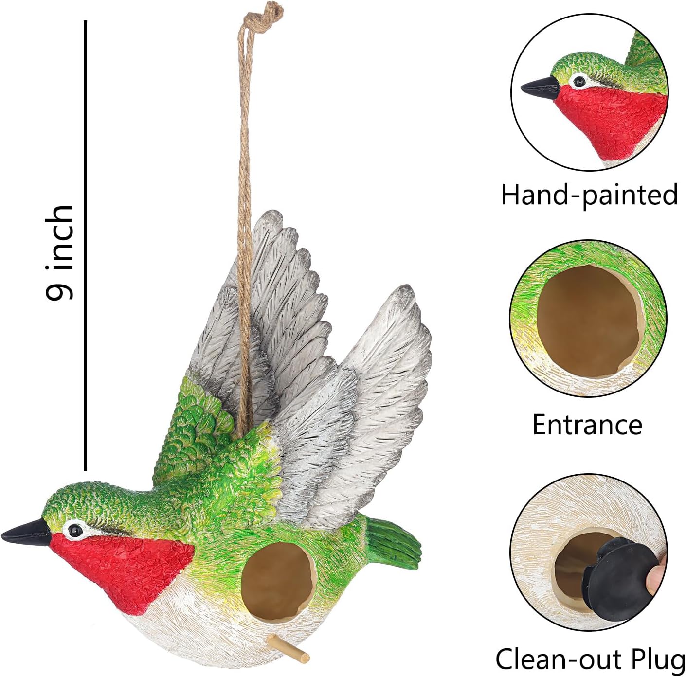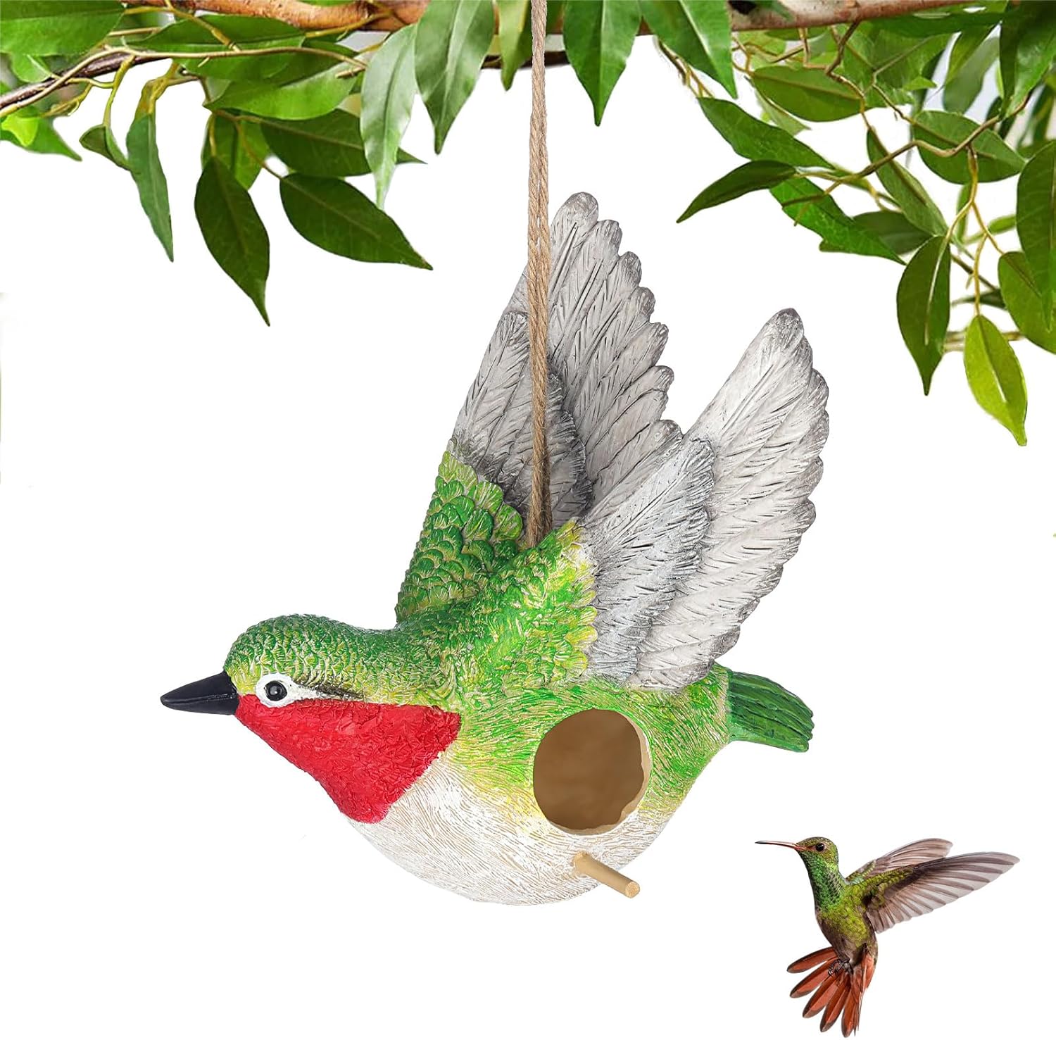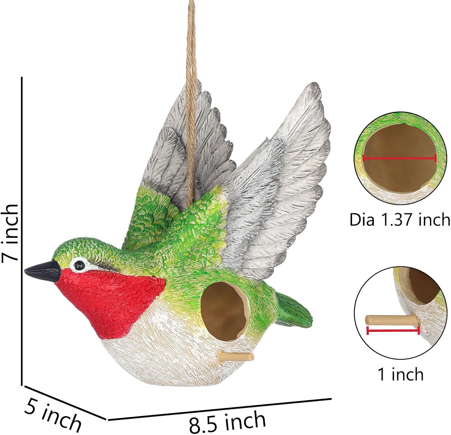 BAYN Bird House for Outside, Hanging Handcrafted Hummingbird Resin Outdoor birdhouses Humming Bird, Bluebird, Wren, Camper Hanging Houses nest cage