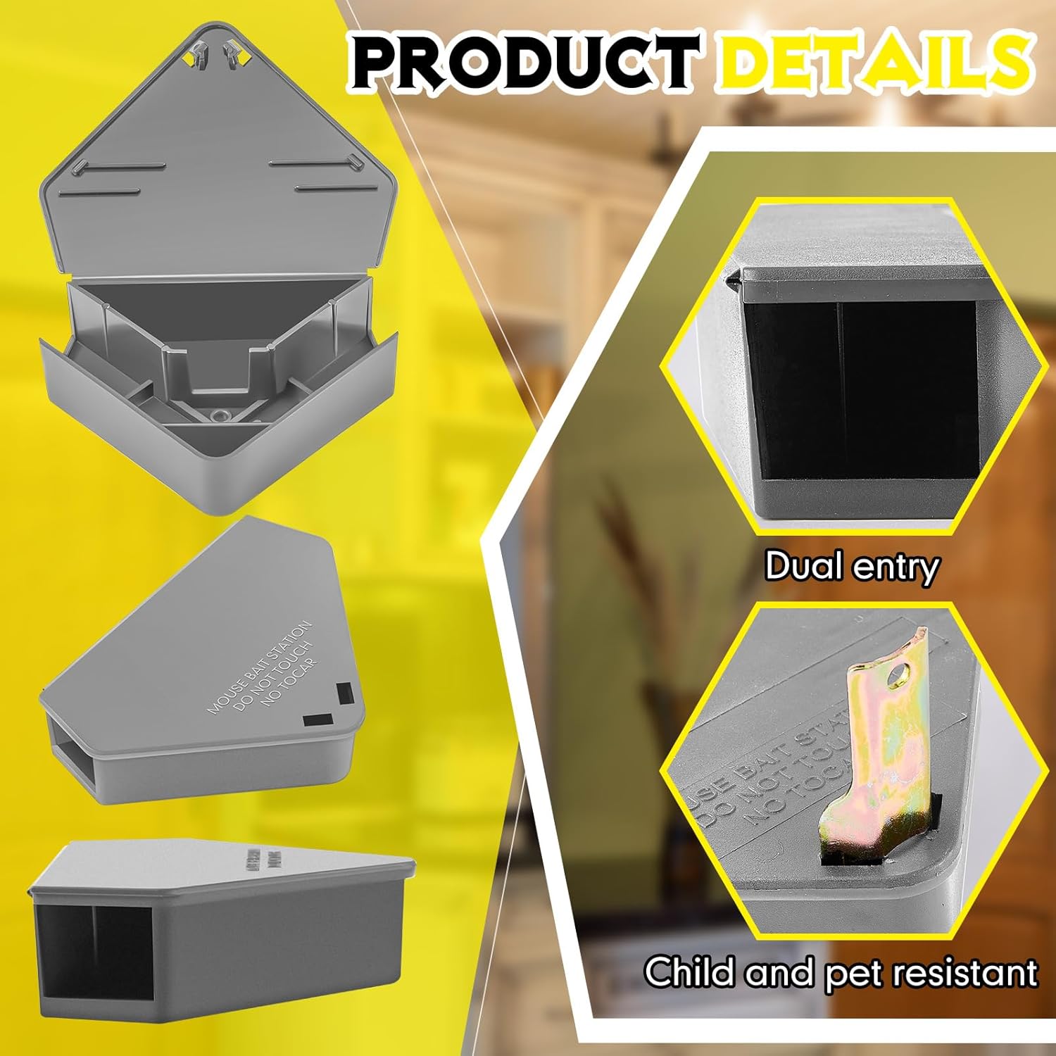- Triangle Design: the mouse station is designed in a triangle shape, which is stable and safe, suitable for placing in small spaces, corners and under furniture;Please note: The mouse trap station will not catch mice directly, please use it with poison bait