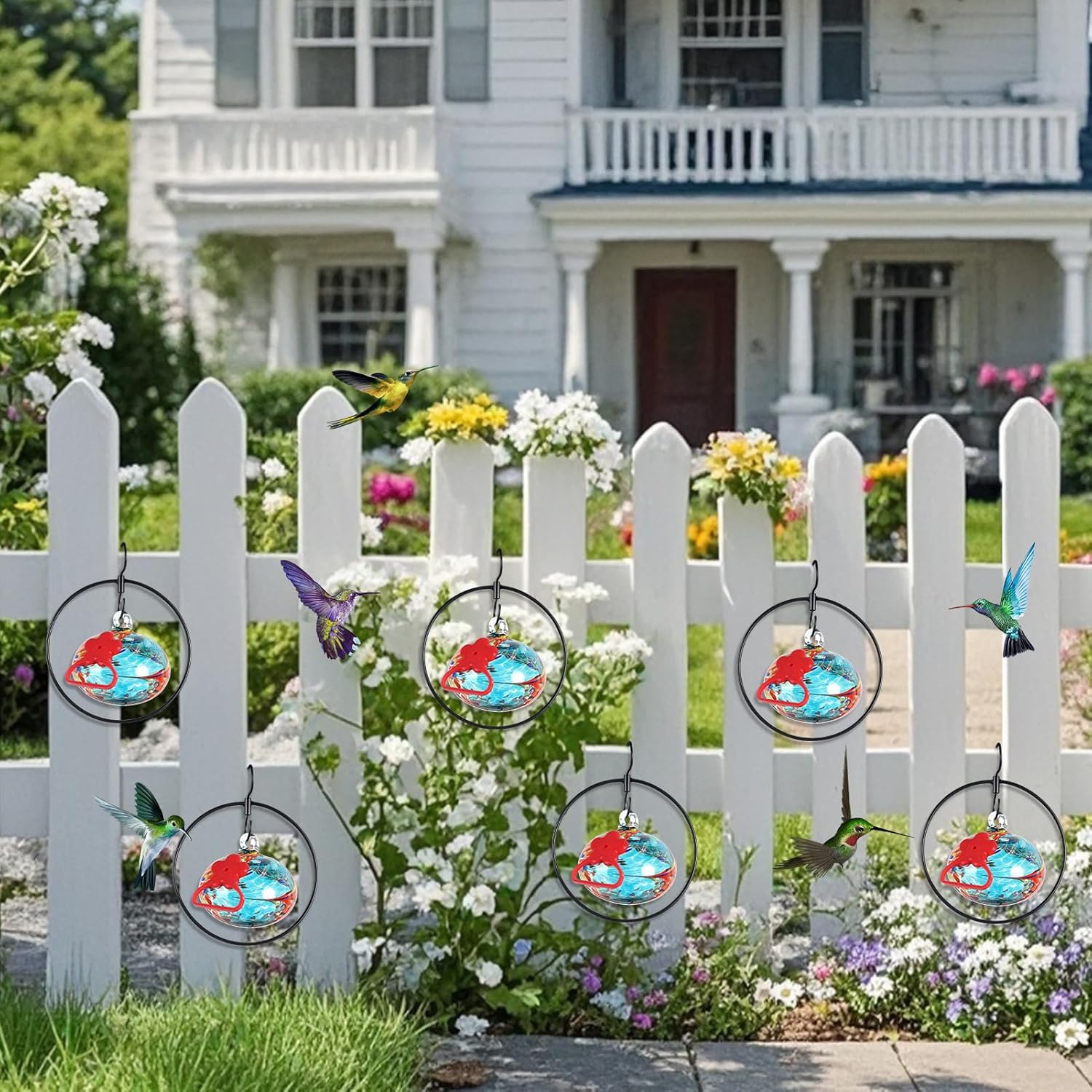 Flexible 6-Circular Hummingbird feeders for Outdoors Hanging Ant and Bee Proof,Hand Blown Glass Hummingbird Feeder with 6 Adjustable Silicone Perch(Blue)