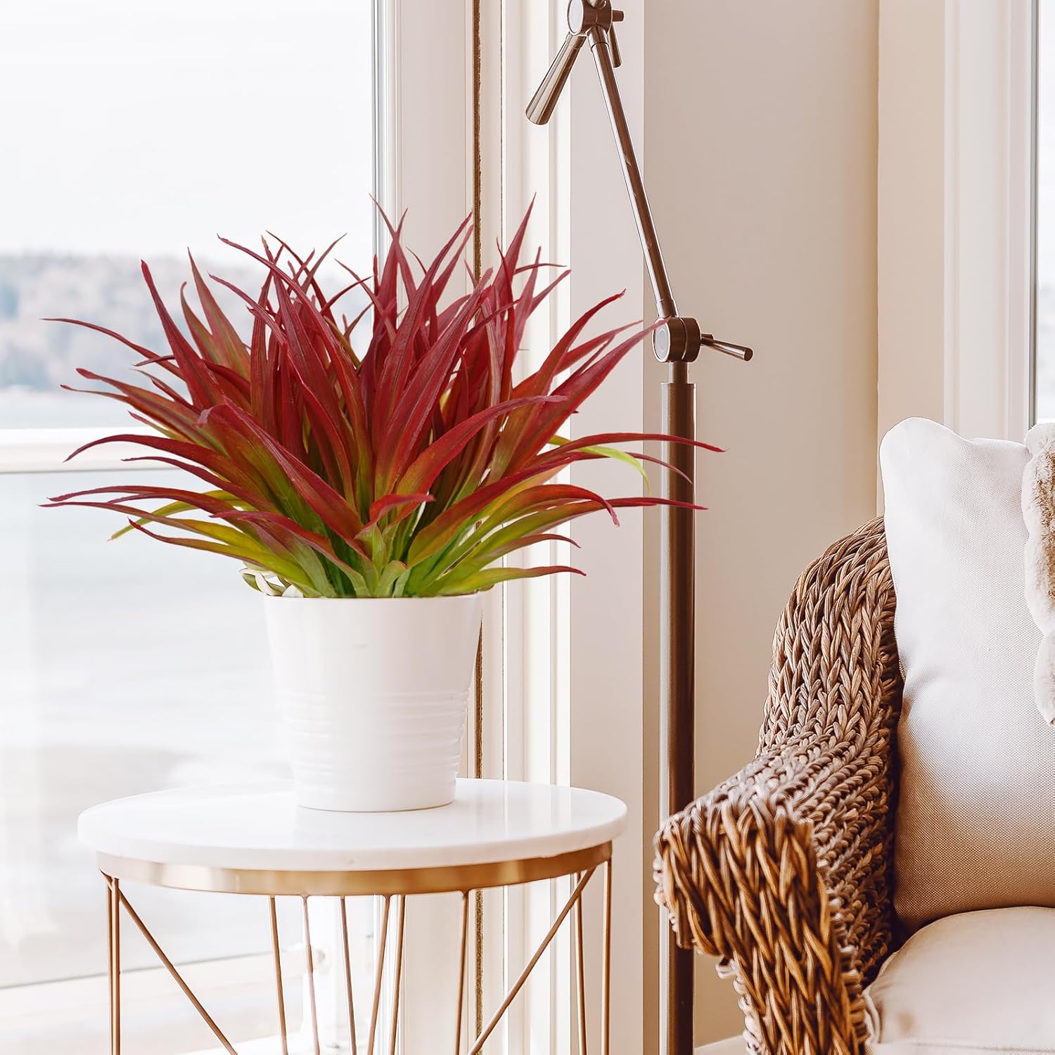 16Pcs Artificial Grass Fake Plants 17.3in Outdoor Plants UV Resistant Greenery Stems Fake Grass for Home Window Garden Office Patio Pathway Front Porch Décor Light Green & Red