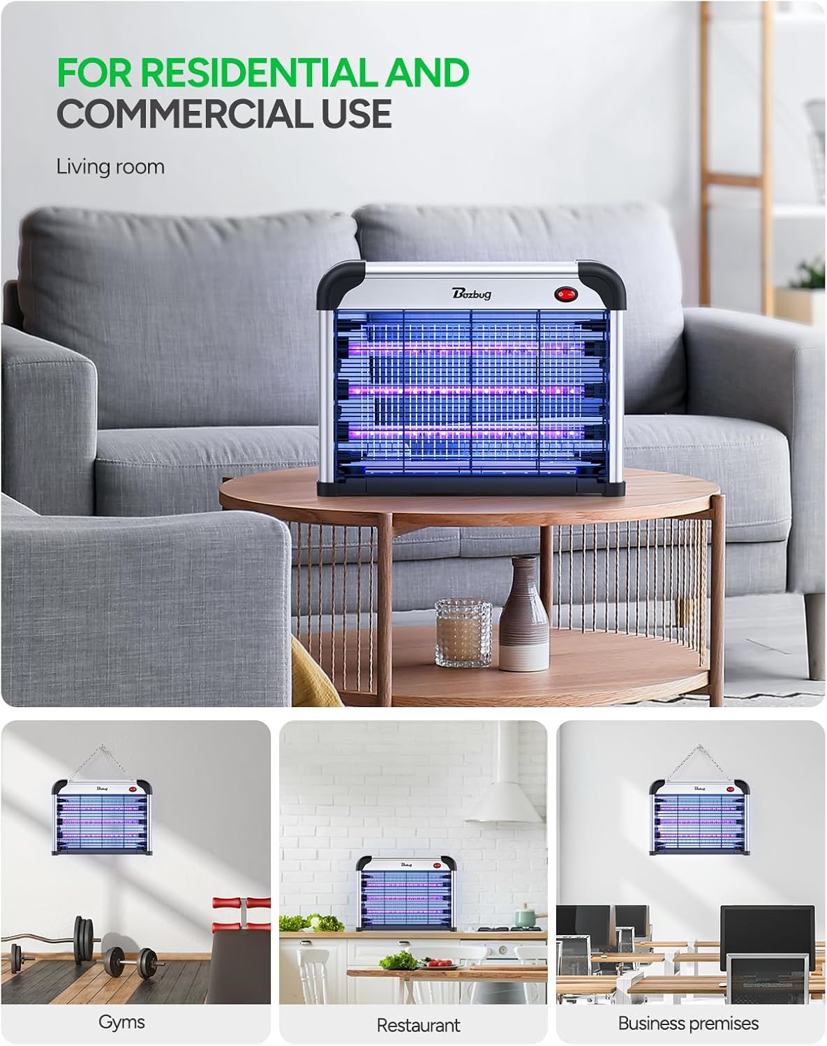 - Simple to Use and Clean: Simply plug the indoor bug zapper into a socket and turn on the side switch to use the device. It comes with an extra hanging chain, allowing you to suspend the device or place it on a flat surface. The protective grid is detachable for easy cleaning. Each mosquito zapper indoors features a removable tray at the bottom to collect dead bugs.