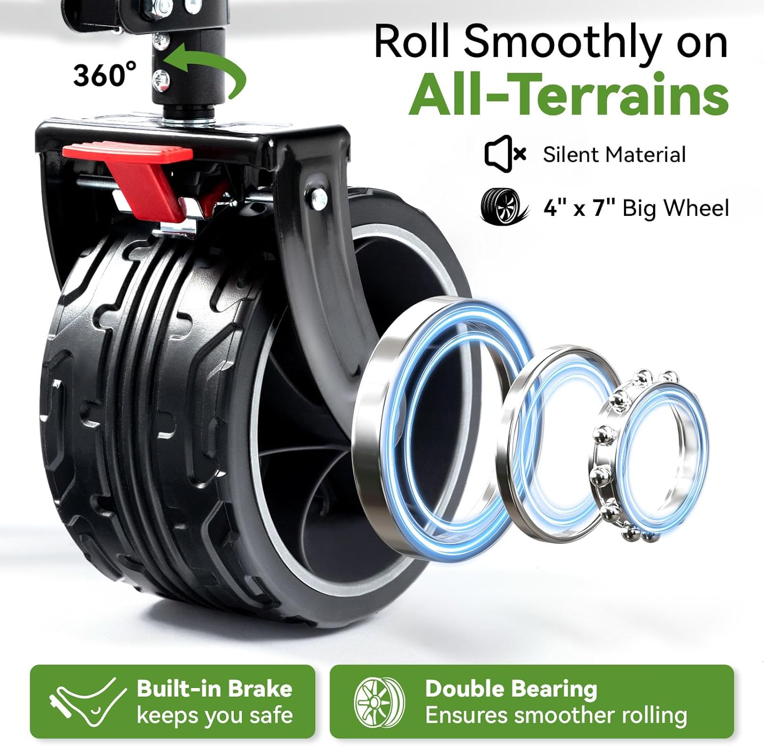 - ššššš šššššš ššššššš ššš šššššššš - Super large 4" wheels with unique anti-slip pattern make our collapsible wagon extremely capable of transporting load on multiple terrains, including sandy beach, grass and even rough terrains. The wheels of our beach cart are significantly wider than similar folding carts, resulting in dramatically better steering. The dual front wheels are 360-degree rotatable for easy maneuvering.