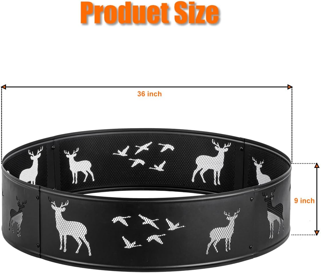 - [Practical & Beautiful Design]: The fire ring has mesh design allows for durability and good airflow for a bonfire. Itβs also avoids sparks and embers from flying out. Cute deer and bird cut-out in the fire ring, which enhance for style. The cutouts in fire ring look amazing when illuminated during an evening bonfire. Enjoy hours sitting around this outside fire ring with family and friends (Note: There is no bottom to this ring).