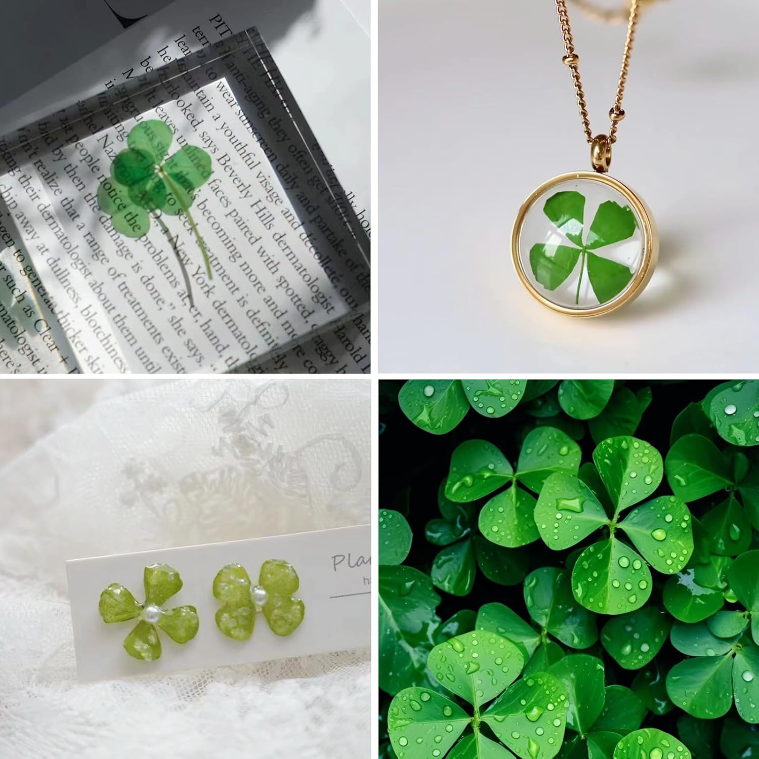 - Pressed flowers made of natural four leaf clover, total about 48 pcs. They are very suitable for resin molds, jewelry making, and various handicrafts.