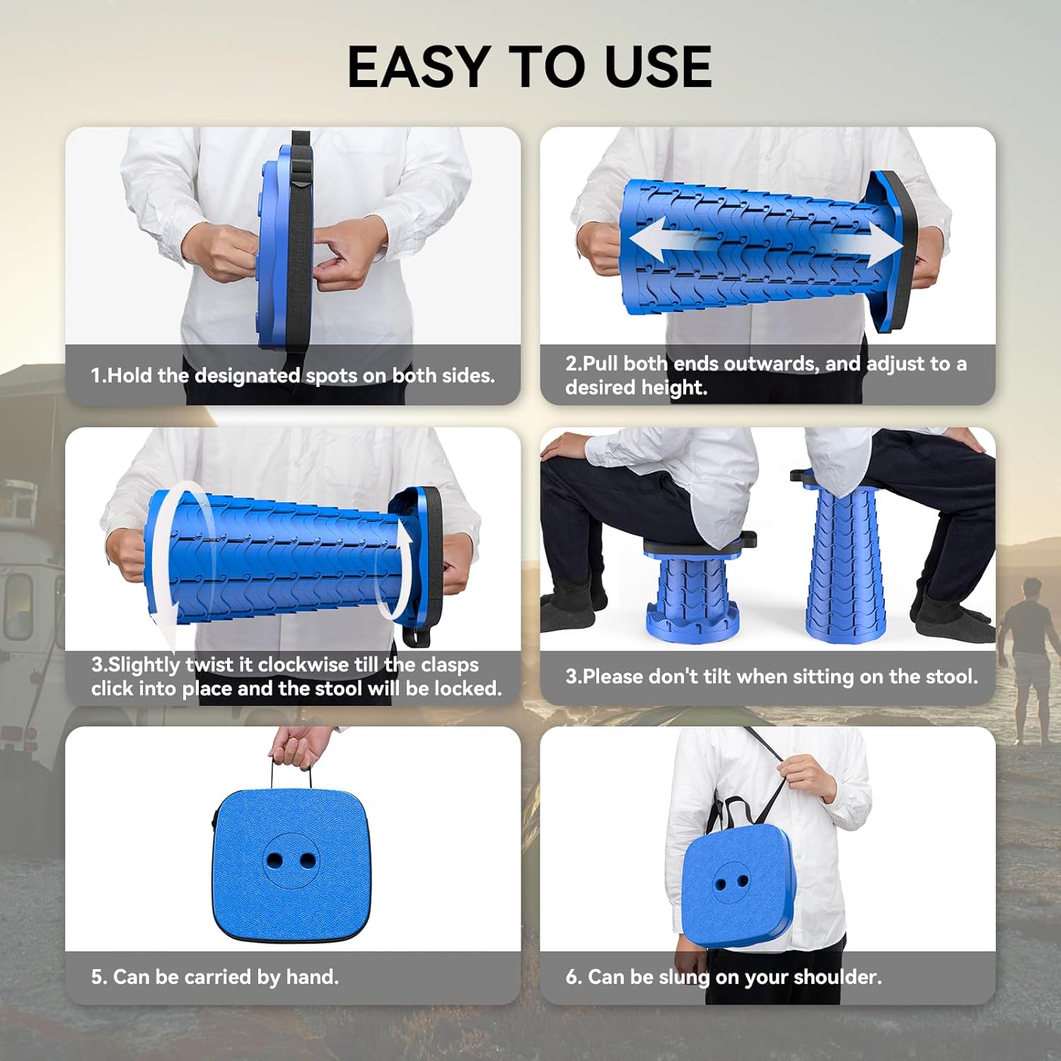 2025 Upgraded Collapsible Stool, Portable Folding Stool, Telescoping Camping Stool with Max Load Capacity 485lbs, Square Retractable Seat for Camping Gardening Fishing Hiking BBQ [Blue]