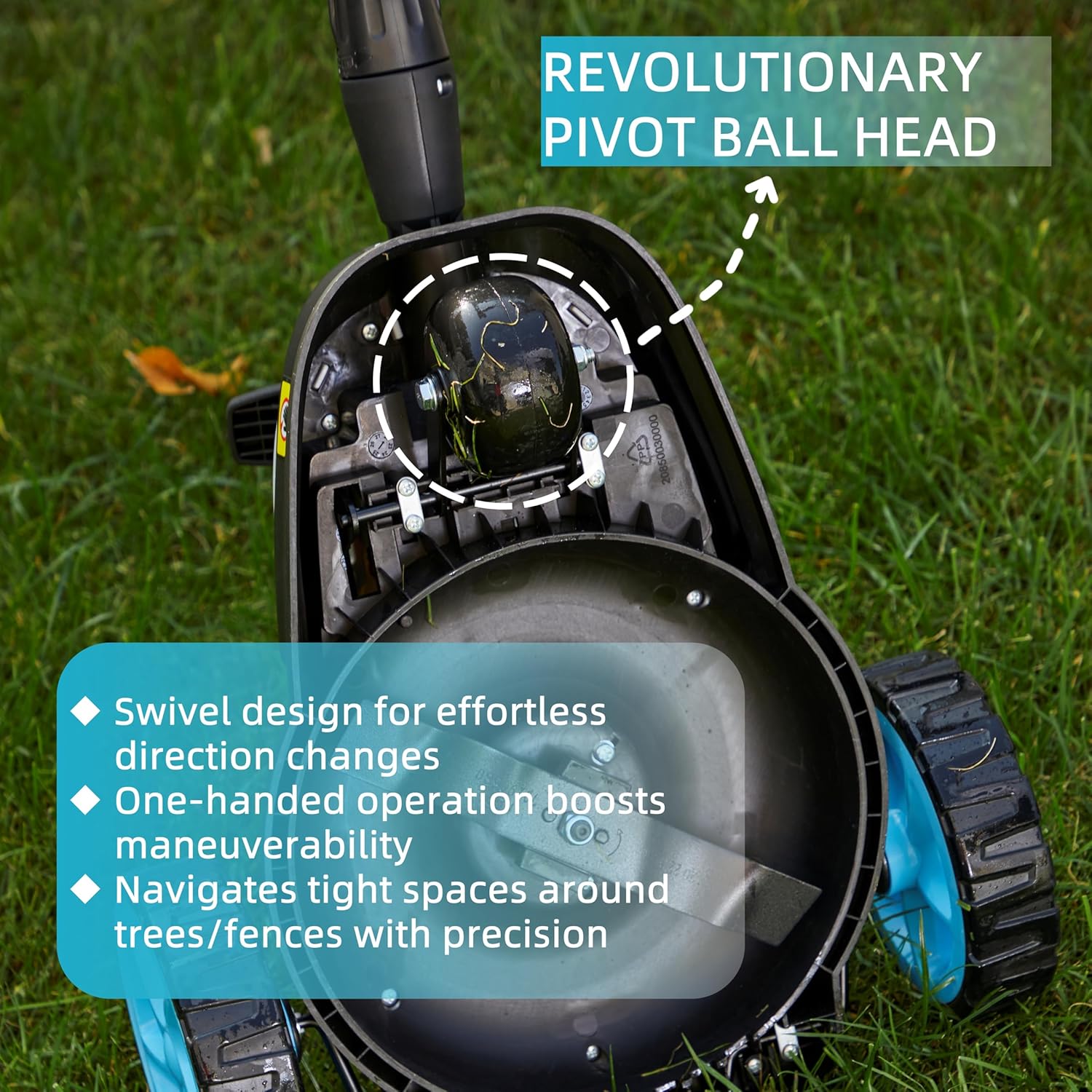 - [Ultra-Light & Compact] Weighing only 5.2kg (11.5lbs without battery), this mini cordless lawn mower is highly maneuverable with pivoting front wheels and one-hand steering—perfect for tight corners and small areas.