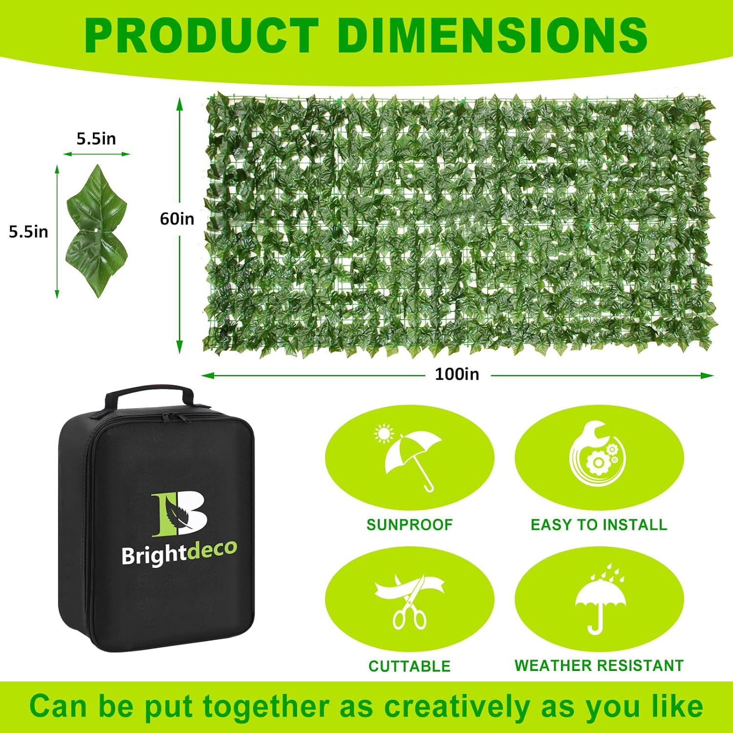 Artificial Ivy Privacy Fence Screen 60x100in Privacy Hedges Wall Faux UV-Anti Panel for Indoor Outdoor Garden Balcony Decor