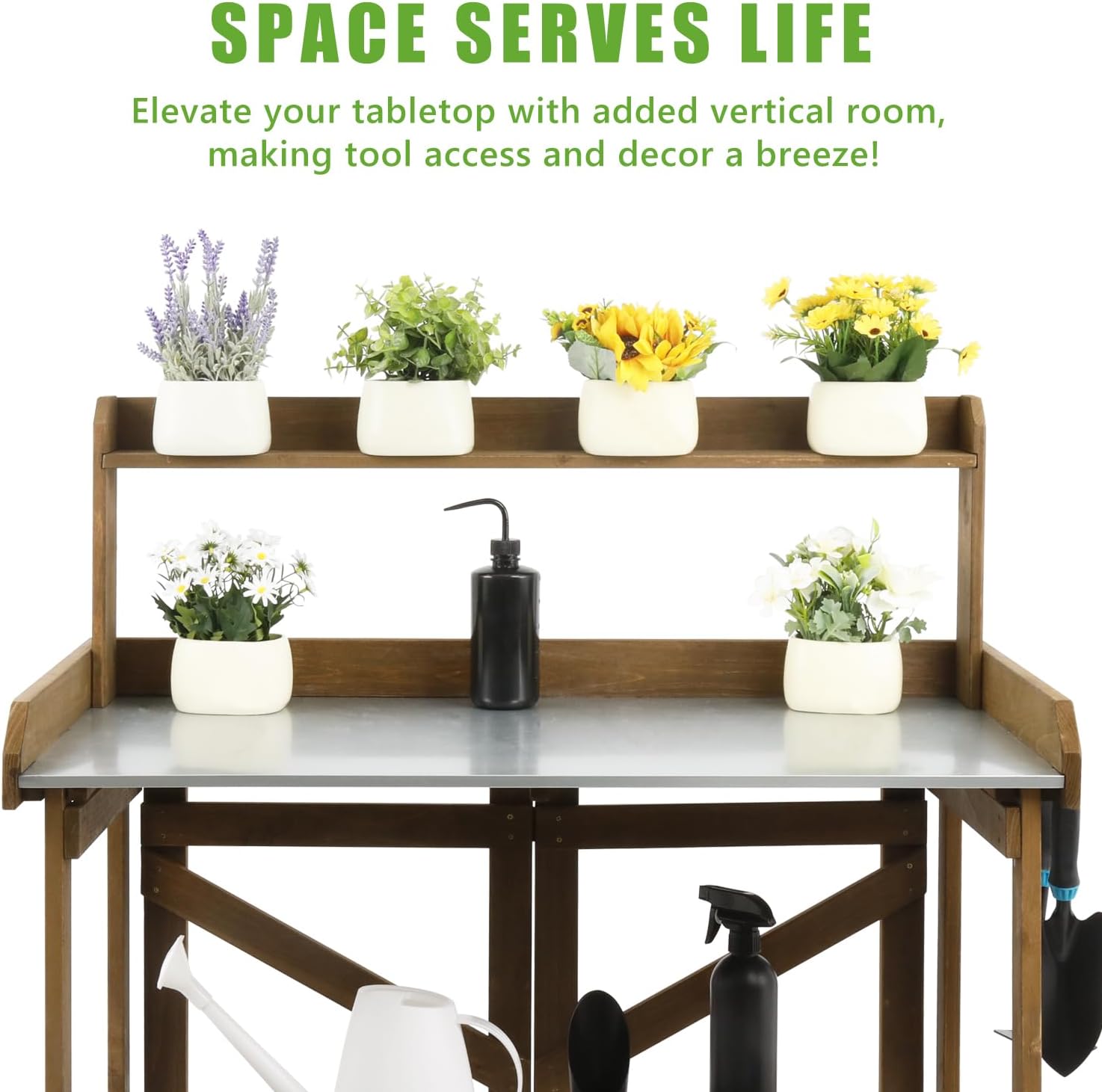 - EASY ASSEMBLY: Partially pre-assembled for quick setup, this potting table includes detailed pictorial instructions and an assembly video on the product page for hassle-free installation.