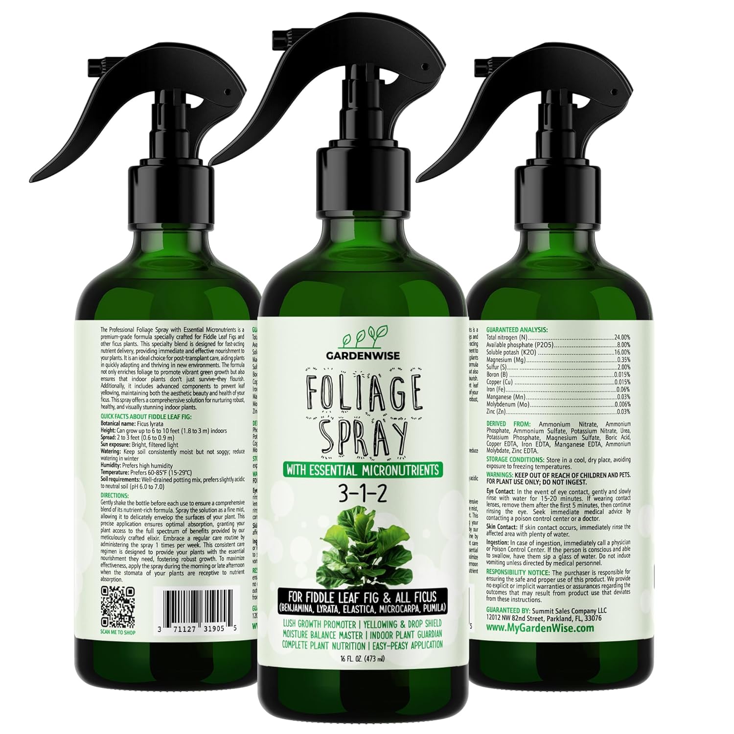 - šæ READY-TO-USE FIDDLE LEAF FIG FORMULA: Our Fiddle Leaf Fig Spray Fertilizer is expertly crafted for Ficus lyrata, providing a perfect blend of nutrients for its large leaves and growth habits. Conveniently ready to use, simply spray it onto both sides of the leaves for immediate nourishment and care.