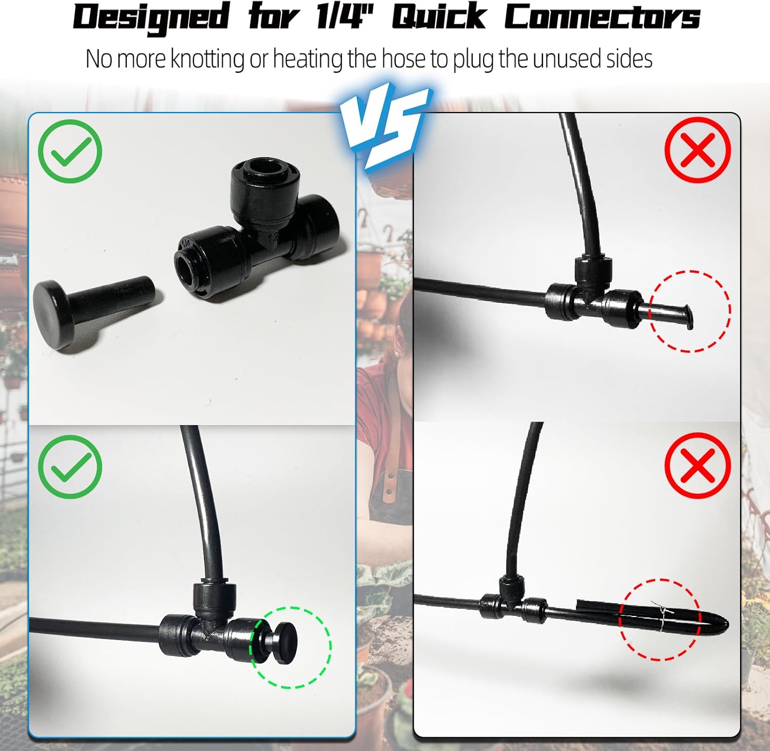 - 1/4" End Plugs for Quick Connect Tee Connectors or any Spalolen push-to-fit 1/4" fittings! No more tying knots or heating hoses to plug unused connectors. Our 1/4" end plugs effortlessly solve this issue. (Not for use on 1/4" tubing ends.) !!! CHOOSE drip irrigation parts FROM 【Spalolen】!!!
