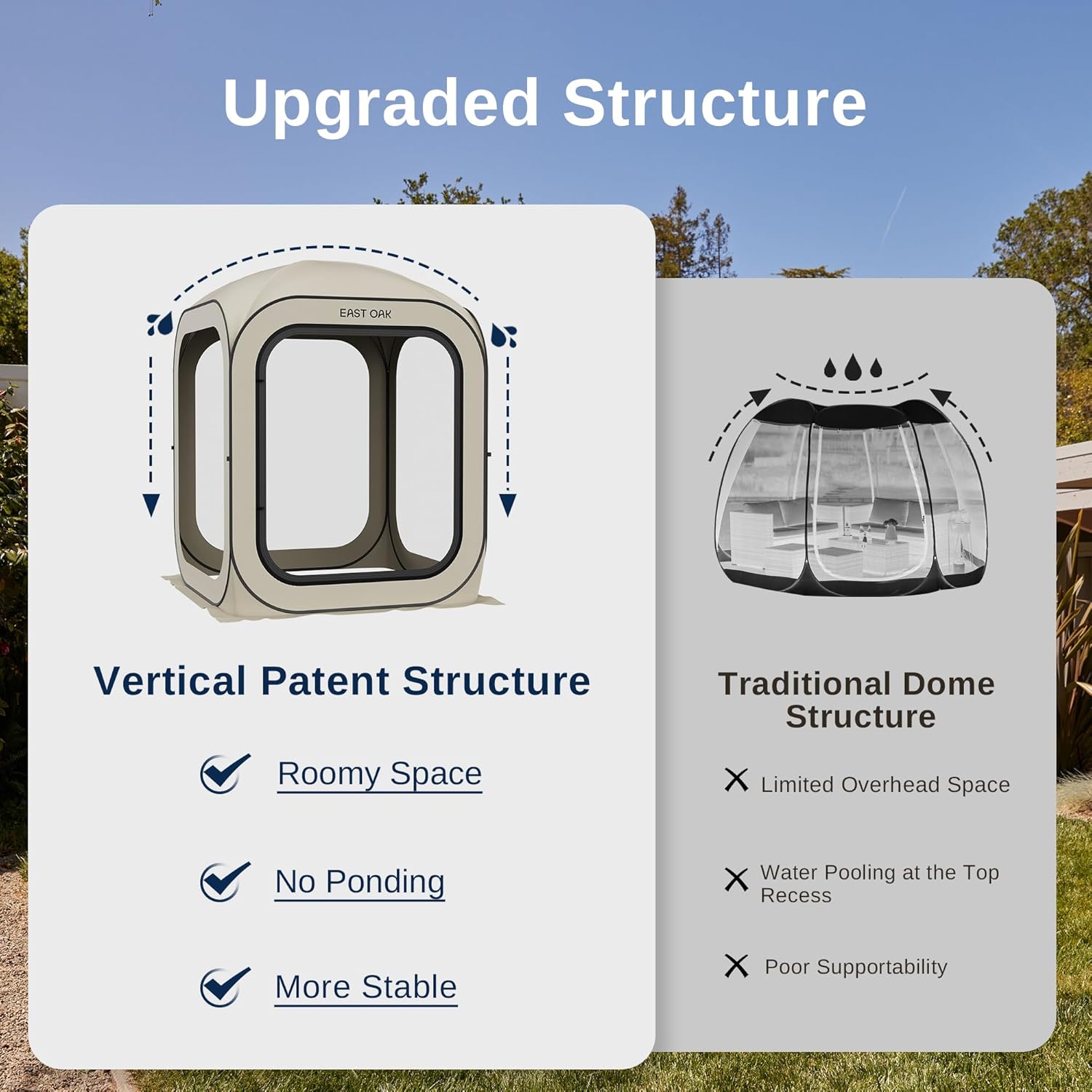 - ššš“š-š£šæš¼š¼š³ ļ¼ š©š²š»šš¶š¹š®šš²š± š¦š½š®š°š² : The EAST OAK portable pop-up screen tent features a 4-sided B3 fine mesh design for 360° perfect ventilation and can protect you from mosquitoes or other bugs. The tent body is made of high-quality Oxford fabric coated with silver to achieve all-day UPF 50+ UV resistance. Ideal for creating a comfortable and protected resting space during various outdoor activities (picnics, camping)