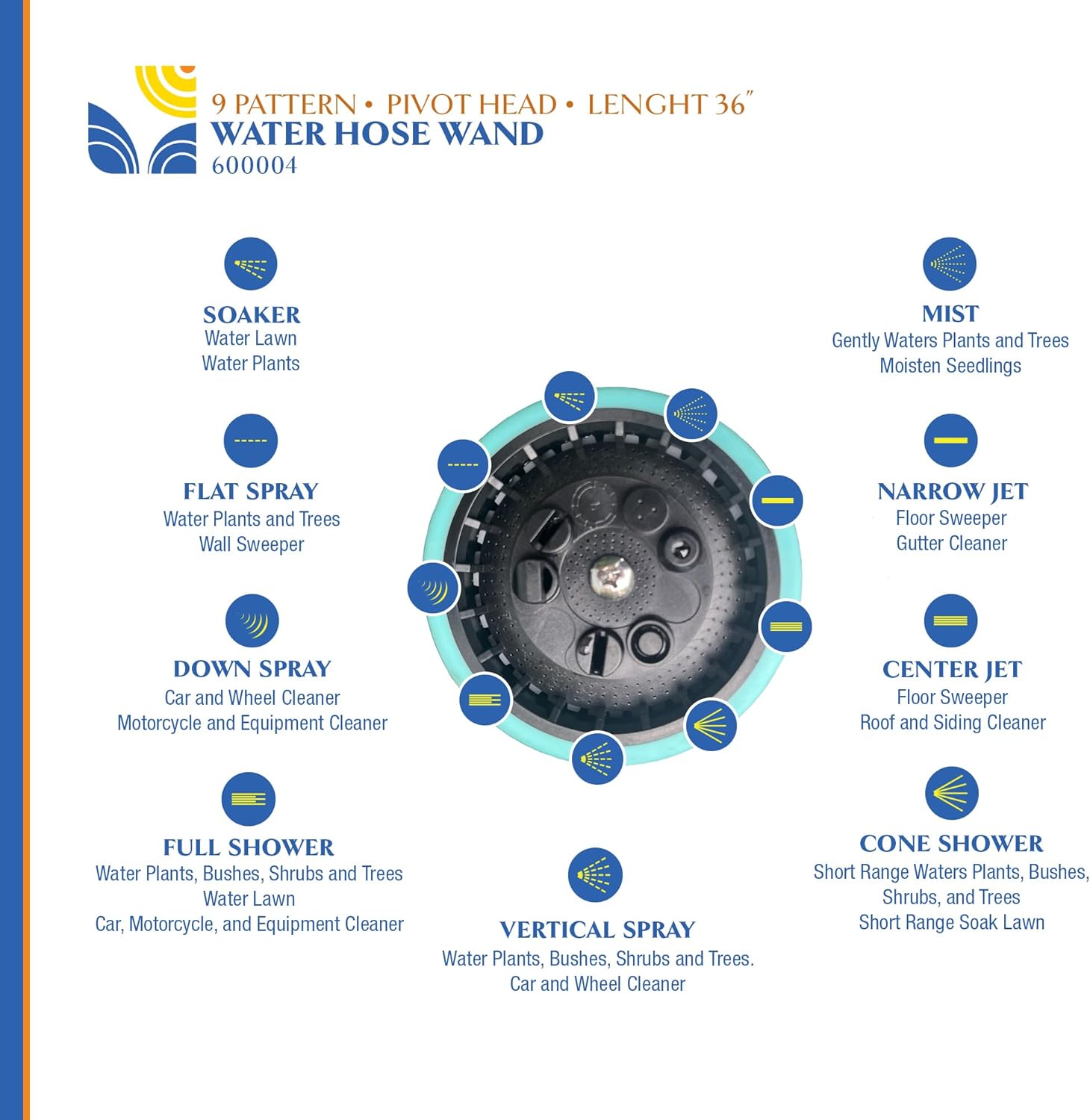 - Multi Pattern: 9 Spray Patterns for convenience and flexibility