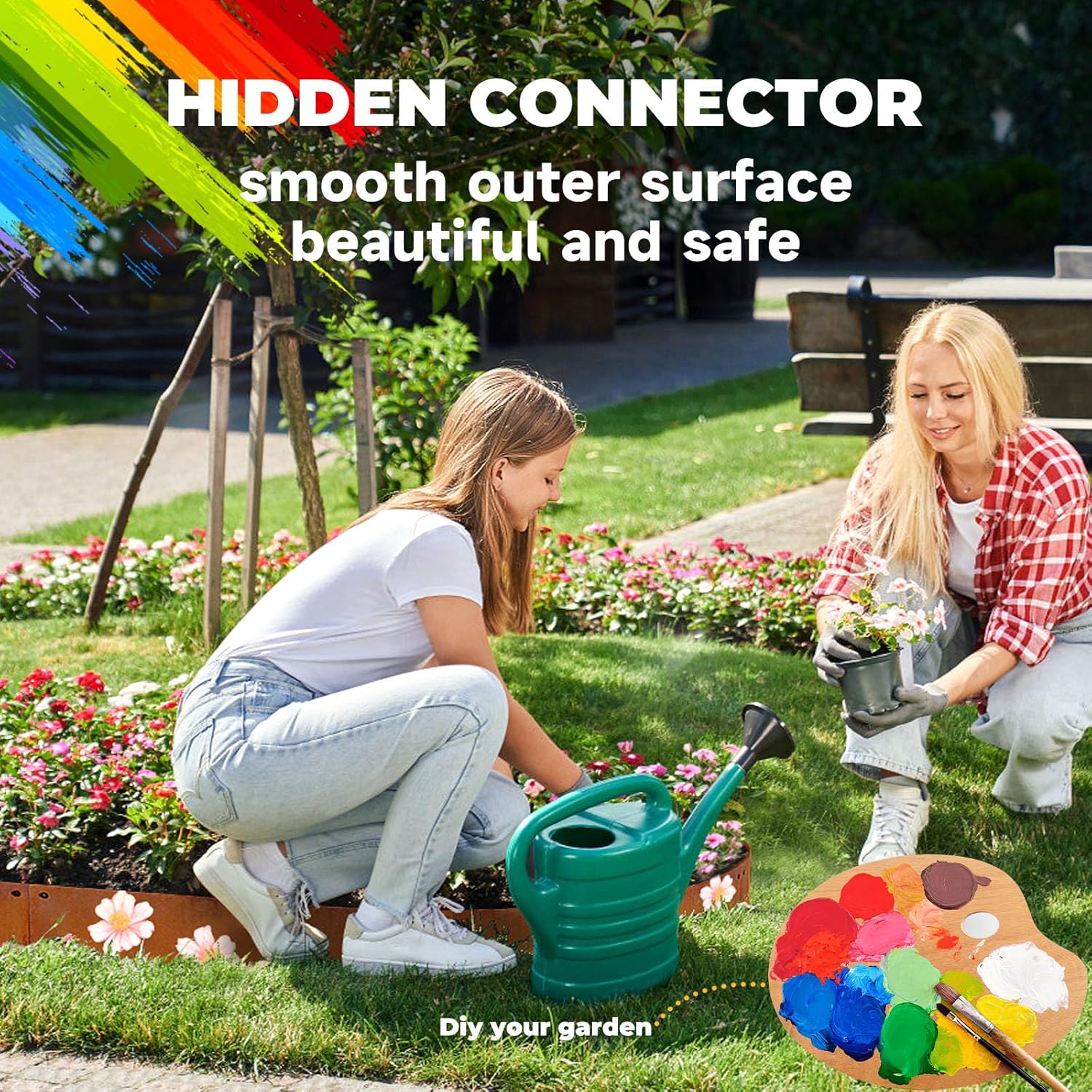 - EASY TO INSTALL - Transform your garden with our easy-to-install Cor ten steel edging kit. Two lanscape edging pieces are connected using four screws for stability and aesthetics, including pre-formed Cor ten steel strips and securing stakes.