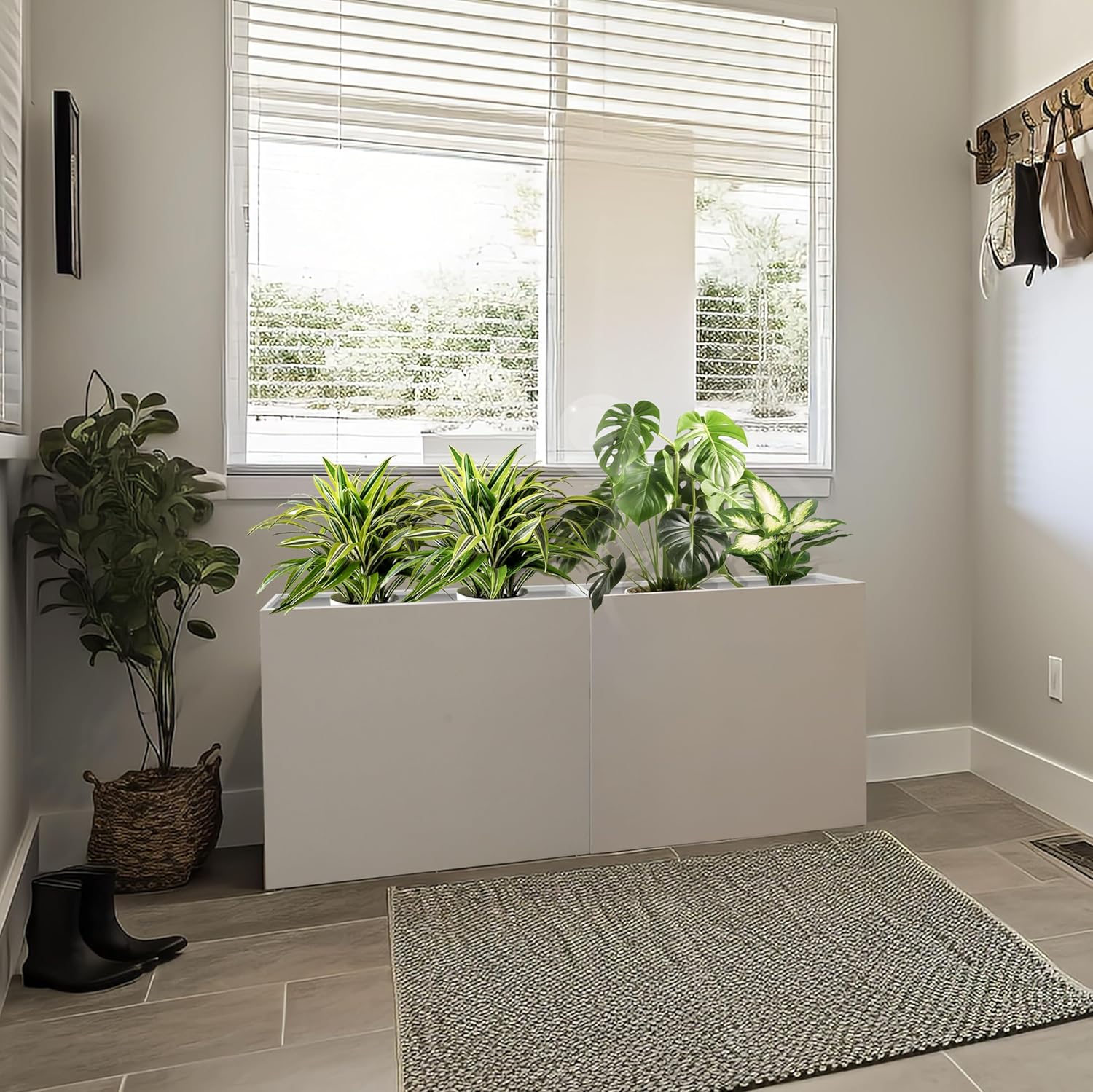Galvanized Steel Metallic Heavy Planter for Outdoor Plants Metal Outdoor Planter Spliced Flower Box with Partitions for Outside,Indoor,Garden (White, 24 * 10 * 24)