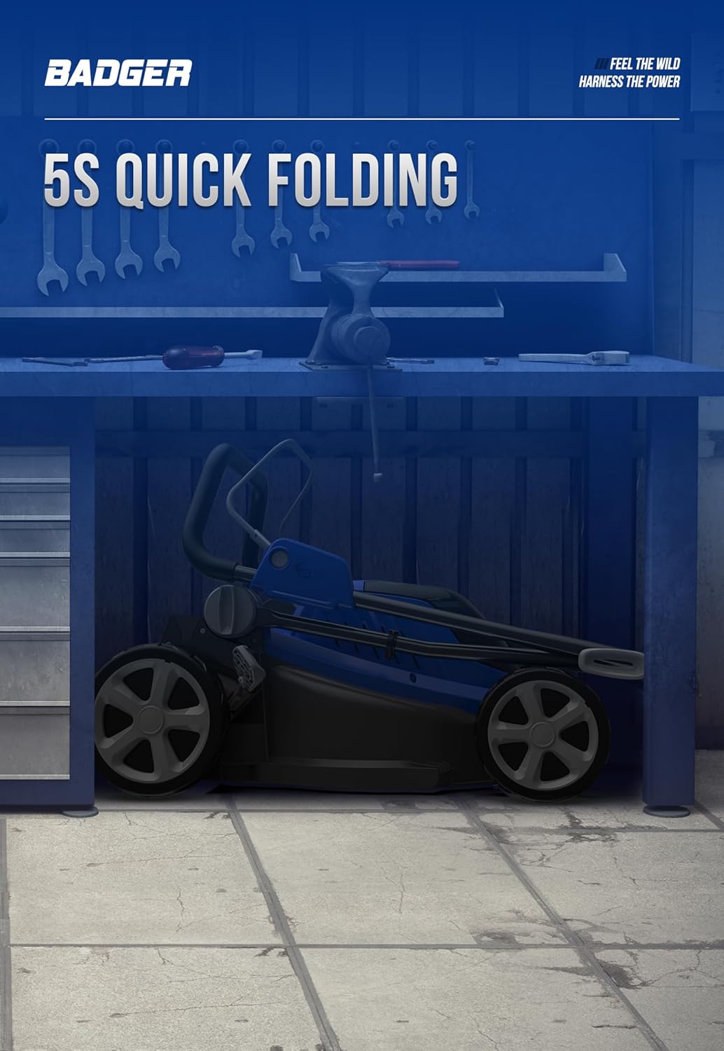 WILD BADGER POWER Lawn Mower 40V Brushless 16" Cordless, 5 Cutting Height Adjustments, Electric Lawn Mower, Quickly Folding Within 5’s, 20V*2 4.0AH Battery and Super Charger Included.