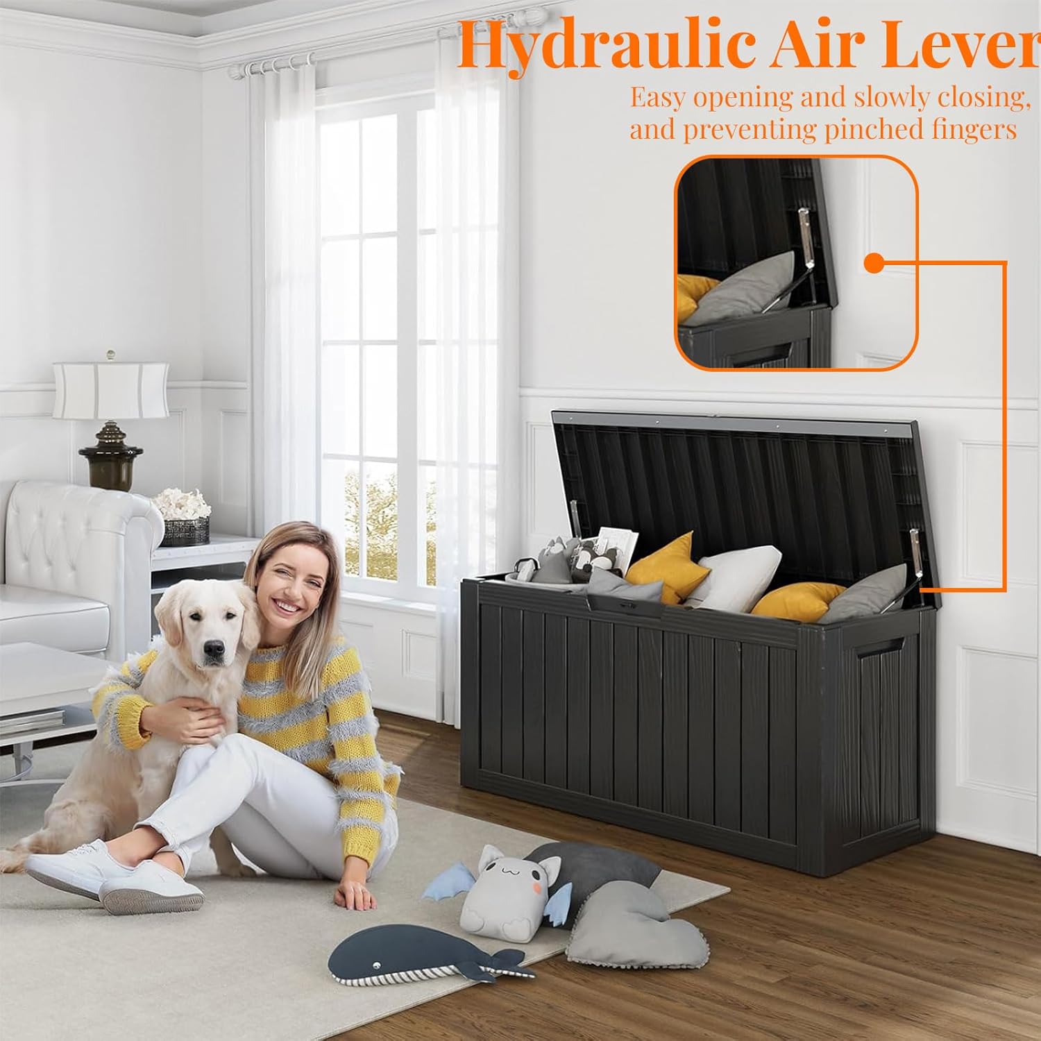 - CONVENIENT DESIGN: Our deck storage box features built-in handles on both sides for easy lifting and mobility. Additionally, you can enhance security by adding a password lock/small lock (not included) to the top cover
