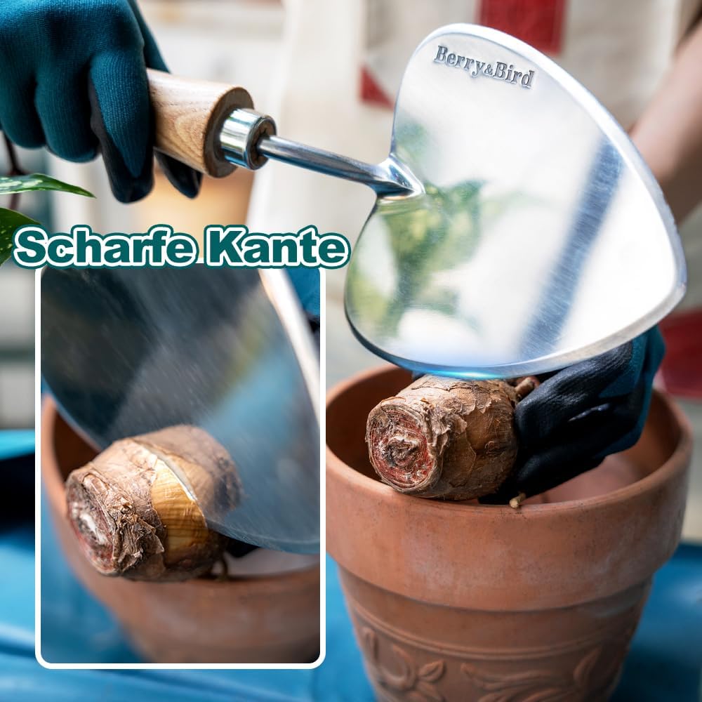 Berry&Bird Perennial Trowel, Oversized Garden Potting Trowels with Sharp Blade Wood Hand Shovel, Stainless Steel Planting TSpade Gardening Tool for Roots,Digging,Transplanting