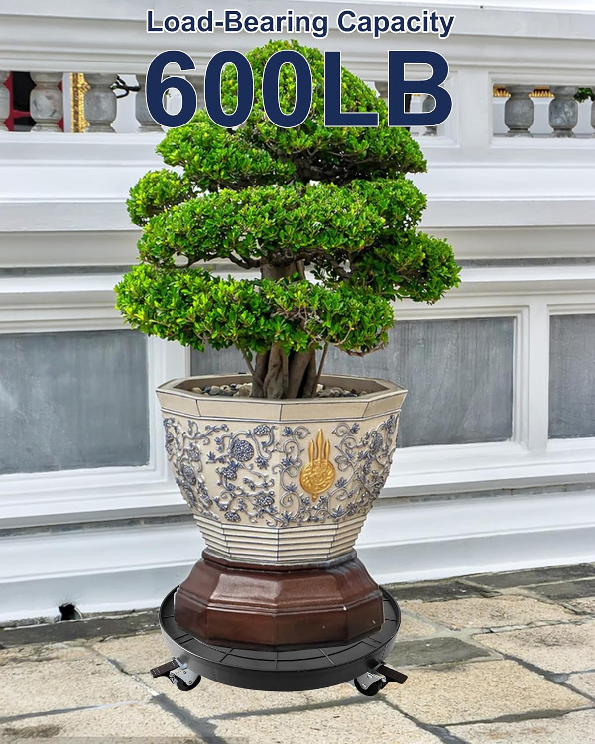- 【8 Double Wheels & 600 Pounds】Unlike other flimsy plant caddy, this 20 inches rolling plant stand has 8pcs 1.9inch heavy duty twin-wheels, 4 swivel caster without brake placed in the center of the panel, 4 lockable swivel caster placed at the edge of the panel. Therefore, the force on the flower rack is more uniform, its maximum load-bearing capacity can reach 600 pounds.