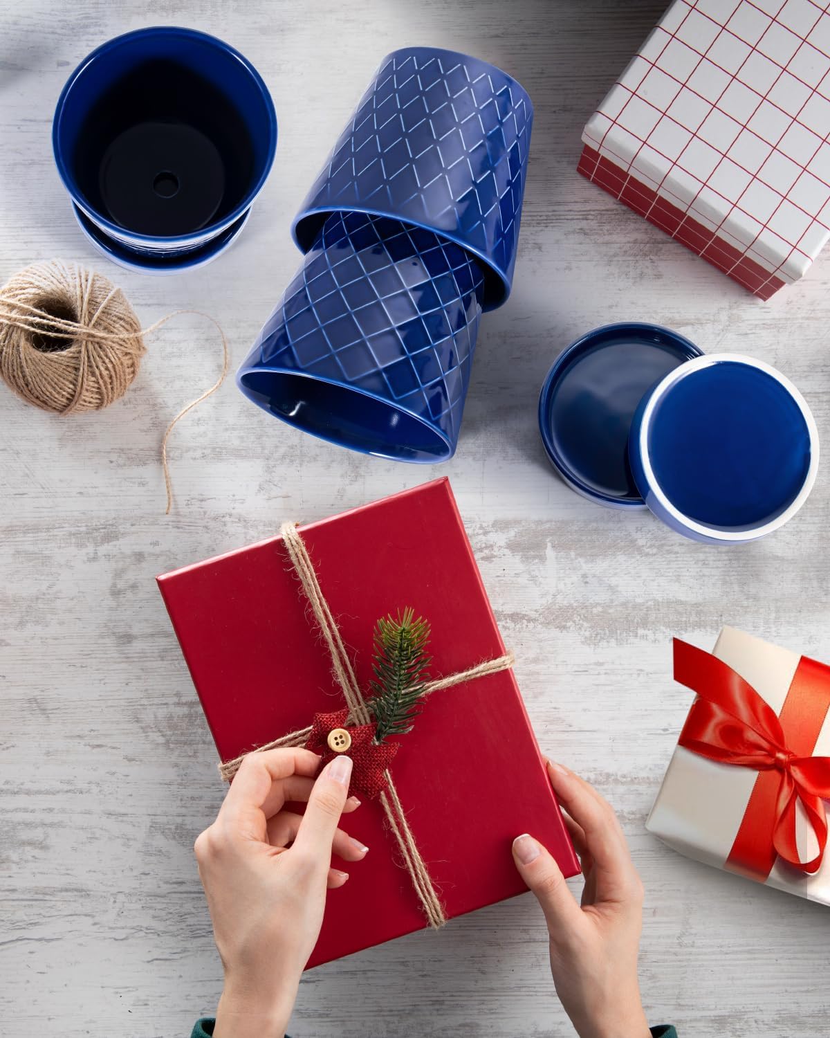 EFISPSS Ceramic Plant Pots, 5Inch Pots for Indoor Plants, Planters with Drainage Holes and Ceramic Tray,Plant Lover Gift, Desktop Office Windowsill Decoration Gift Set of 4 - Blue
