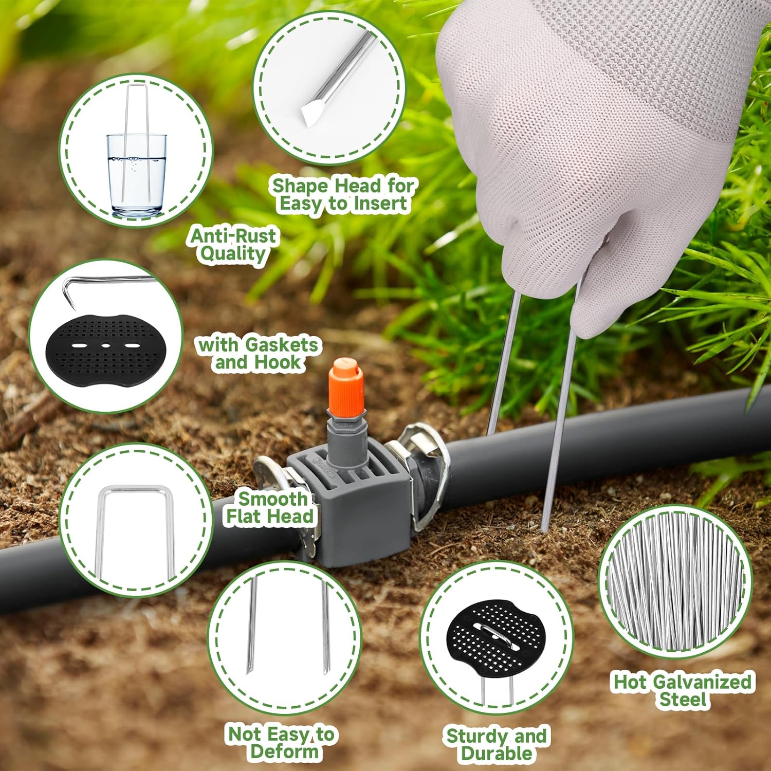 - 【Packaging Composition and Size 】Pack of 200, 6inch long, 1inch wide, 11 Gauge garden stakes. In addition, we also equipped it with 1 pick hook and 200pcs plastic fixing gasket. The fixing gasket can make your project installation firmer, and the pick hook can pull the landscape staples out easily. Packed in thick corrugated carton to avoid damage during transportation