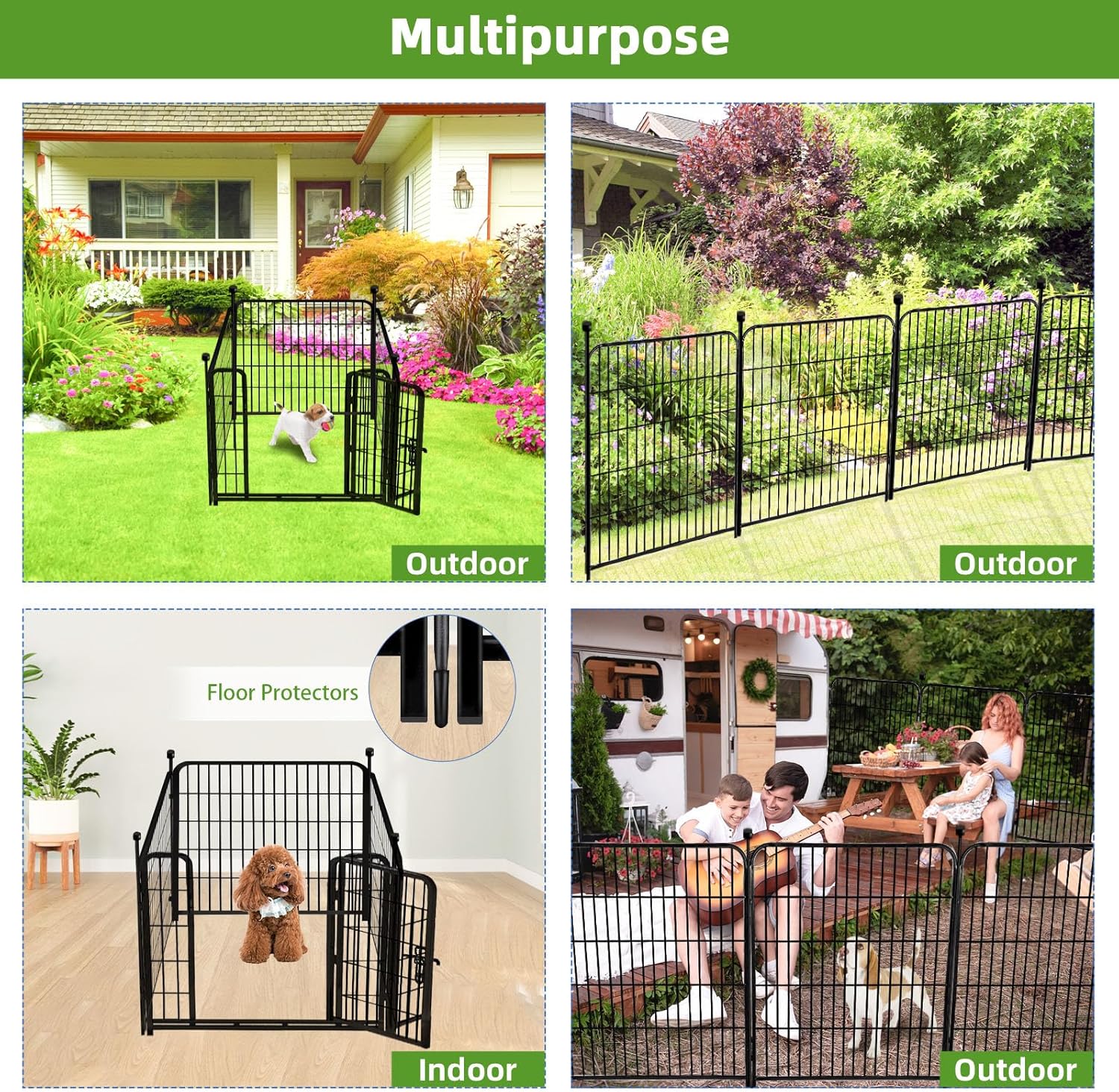 - Easy to Install: The Dog Fence with Gate Can be Assembled in Just A Few Minutes, No Tools Required. It Can also be Disassembled in Minutes When Not Needed. And You Can Assemble It into Many Shapes as You Need, Flexible Arrangement of Garden Fence or Pet Kingdom