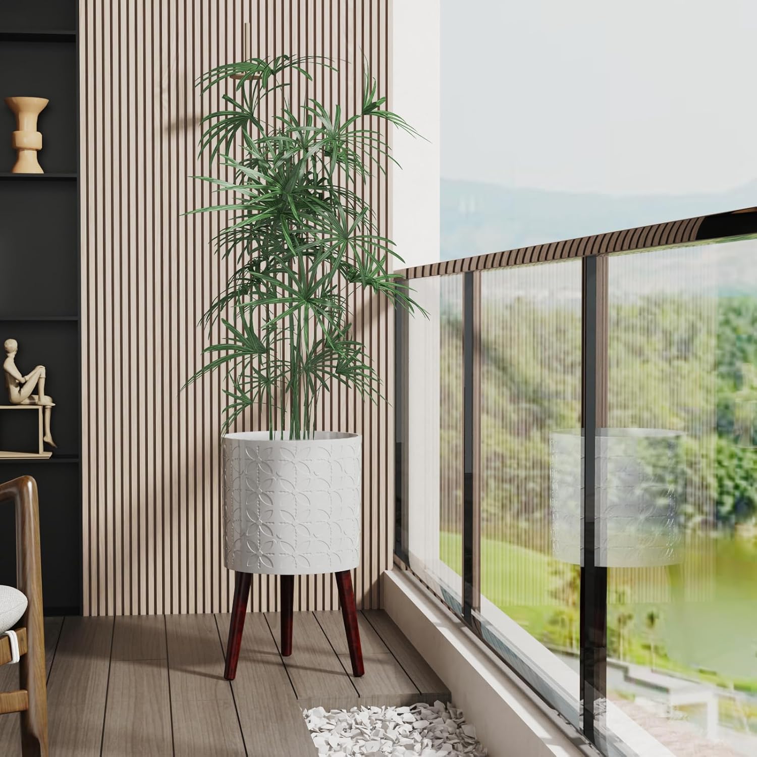 12 Inch Planter Pot with Stand, Planter for Indoor Plants, Modern Large Flower Planter Pot with Drainage Holes for Outdoor,Matte White