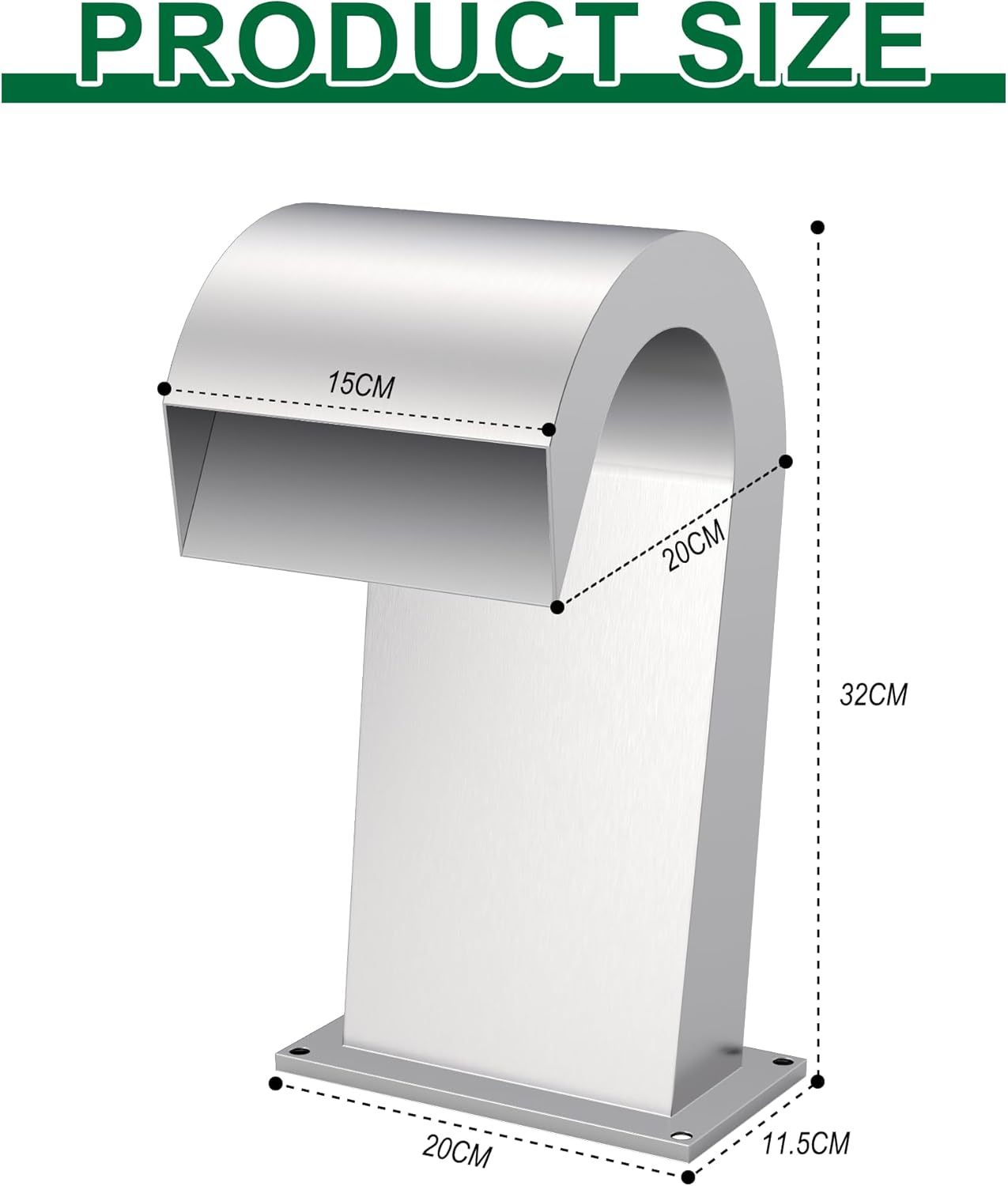 S-Shape Waterfall Spillway Ground Pool Fountain, LONGRUNNEW 304 Stainless Steel Outdoor Water Featur 14.09" x 9.57" x 10.04" for Garden Decor, Landscape Accents & Patio Pond Water Feature-Small