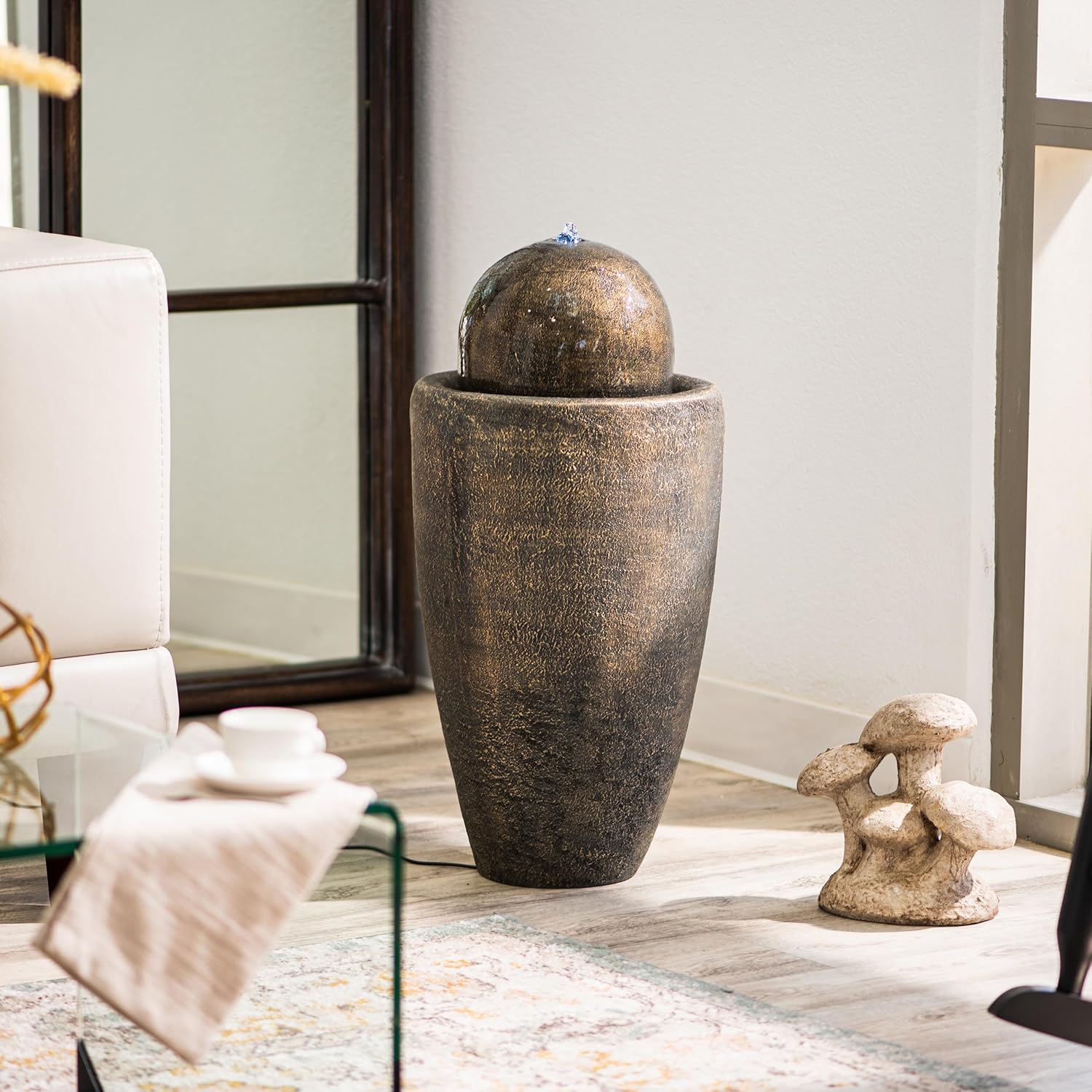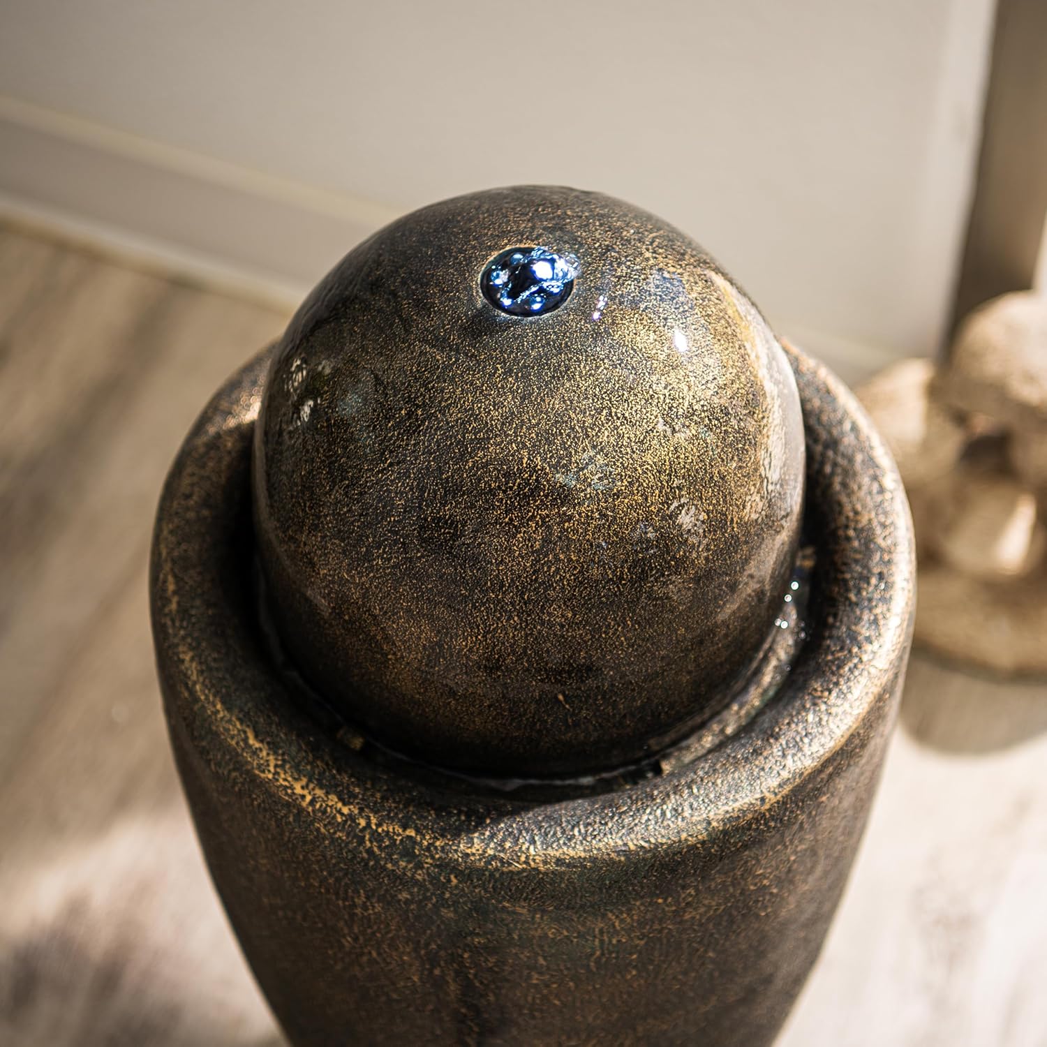 XBrand 25.98" H Round Stone Indoor/Outdoor Modern Stone Textured Sphere Water Fountain w/LED Lights, Ball Water Fountain Decor, Garden Sphere Fountain, Patio Fountain, Outdoor Fountain, Bronze