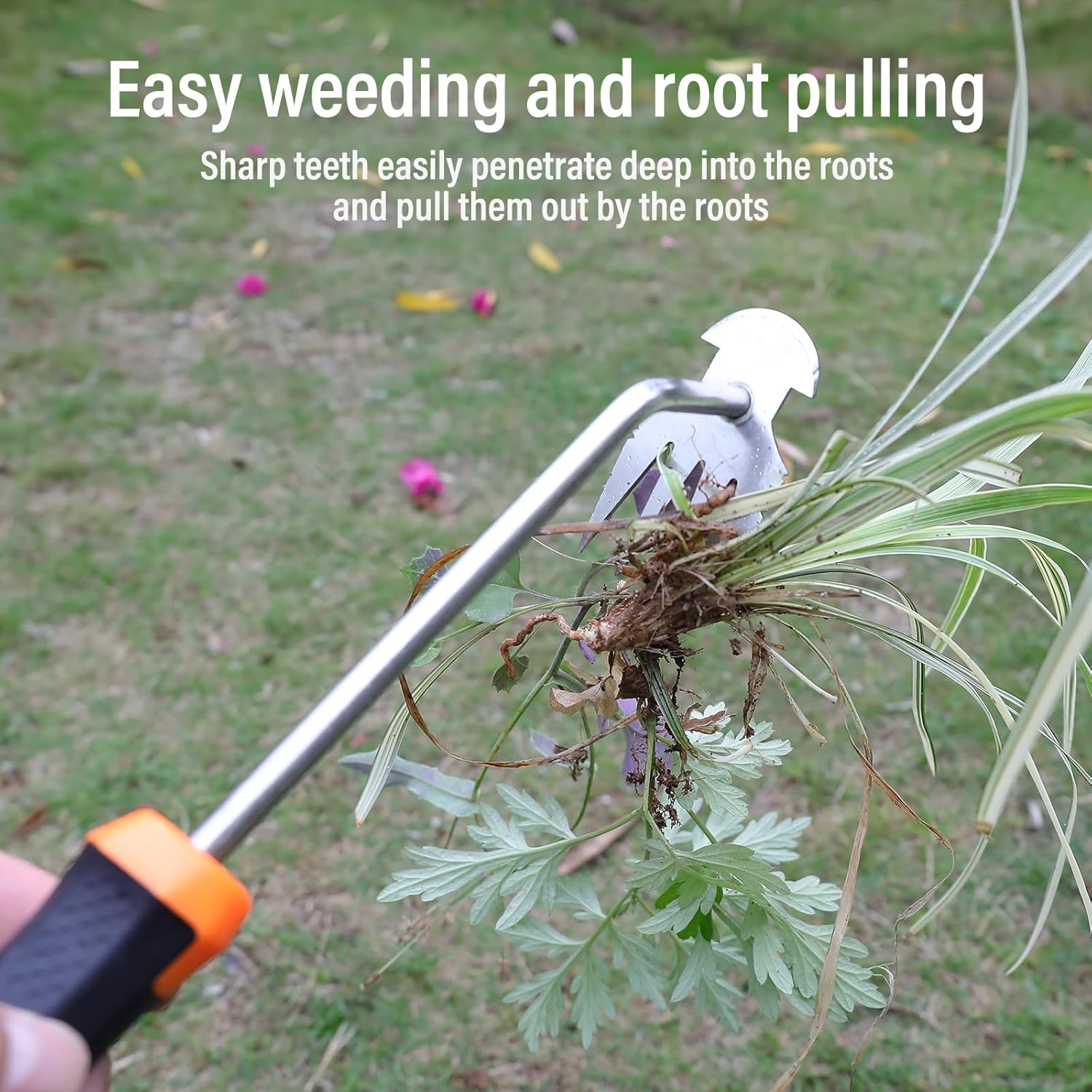 - Durable All-Steel Design: The four-tooth uprooting weeding tool is made of high-quality anti-rust steel, with high hardness and durability. Has high impact resistance and tensile strength, not easy to deform or break.