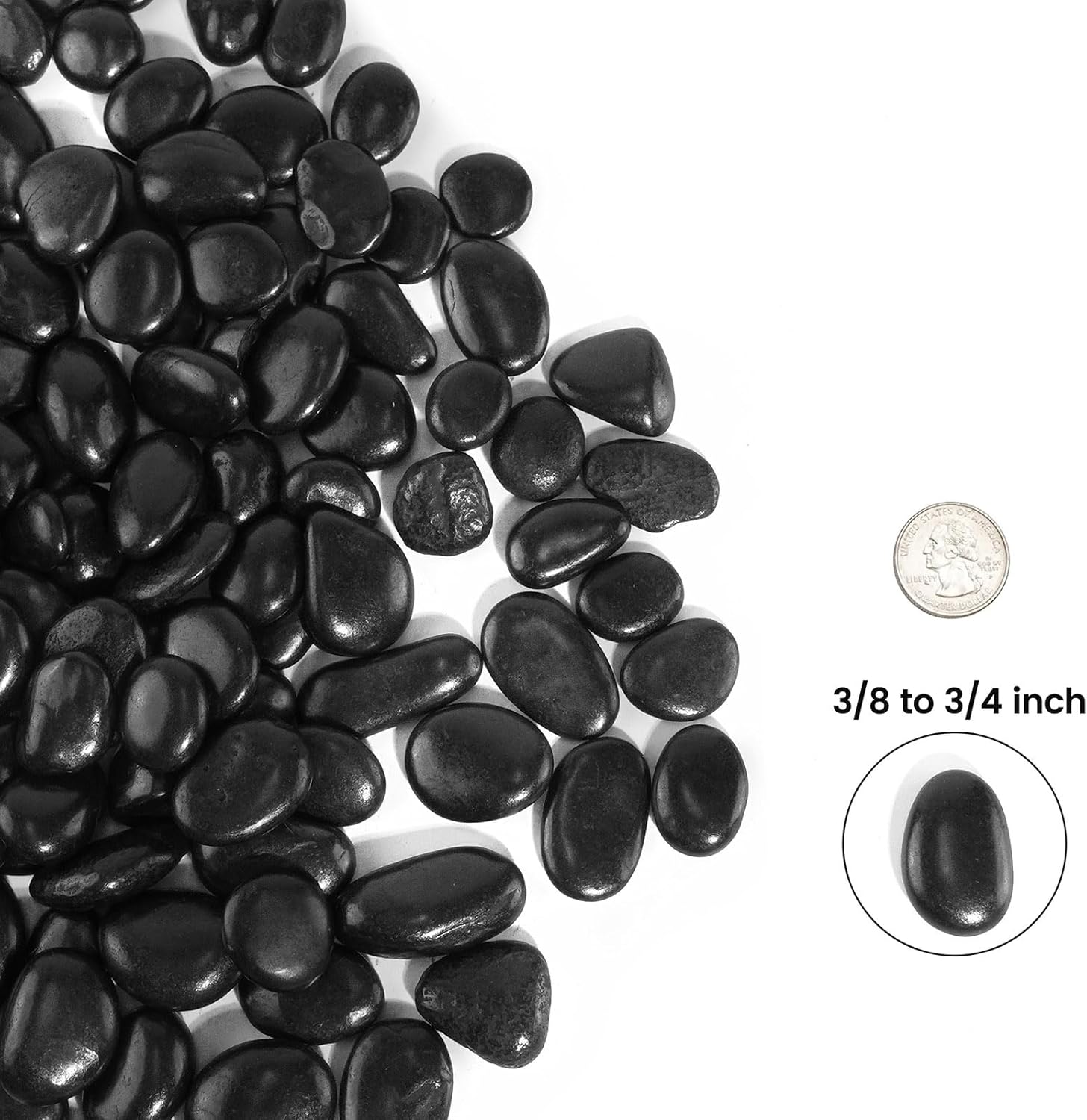 6 LBS River Rocks, StoneCreek, Decorative Garden Stones for Plant Landscaping, Polished Gravel Filler Pebbles for Home Decoration, Vases, Succulents, Flower Beds and Fish Tanks (Black, Medium)